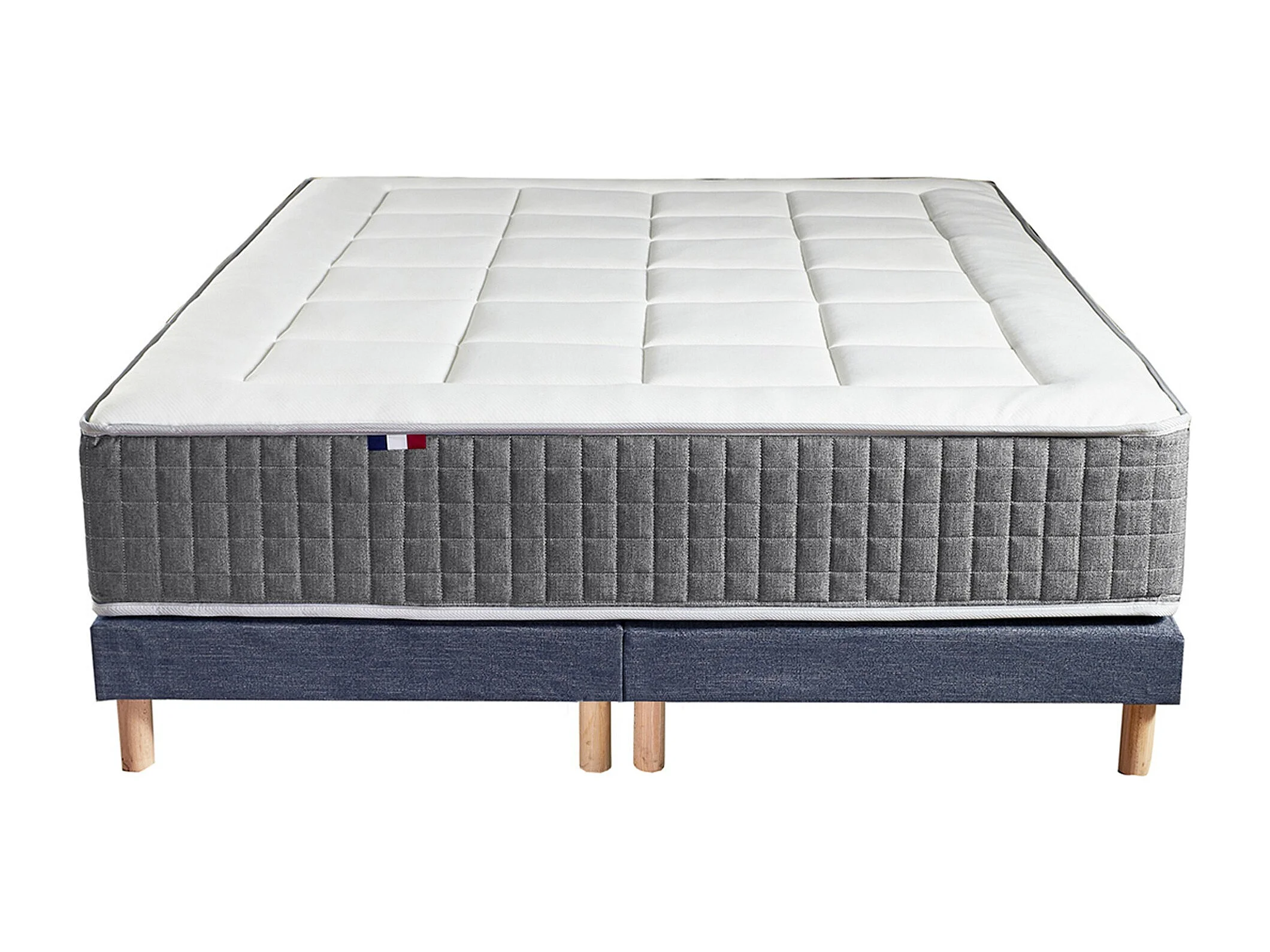 Ensemble Matelas Ressort 7 zones H.28cm + Sommier Fabriqué en France MAX Dimensions - 2x80 x 200 cm, Sommier - Bleu denim