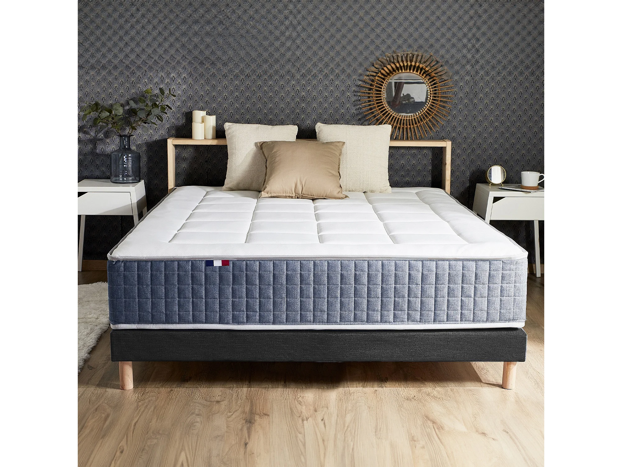 Ensemble Matelas Ressort 7 zones + Mémoire de forme + Sommier KING STYLE + couette + oreillers - Fabriqué en France Dimensions - 160 x 200 cm, Sommier - Noir