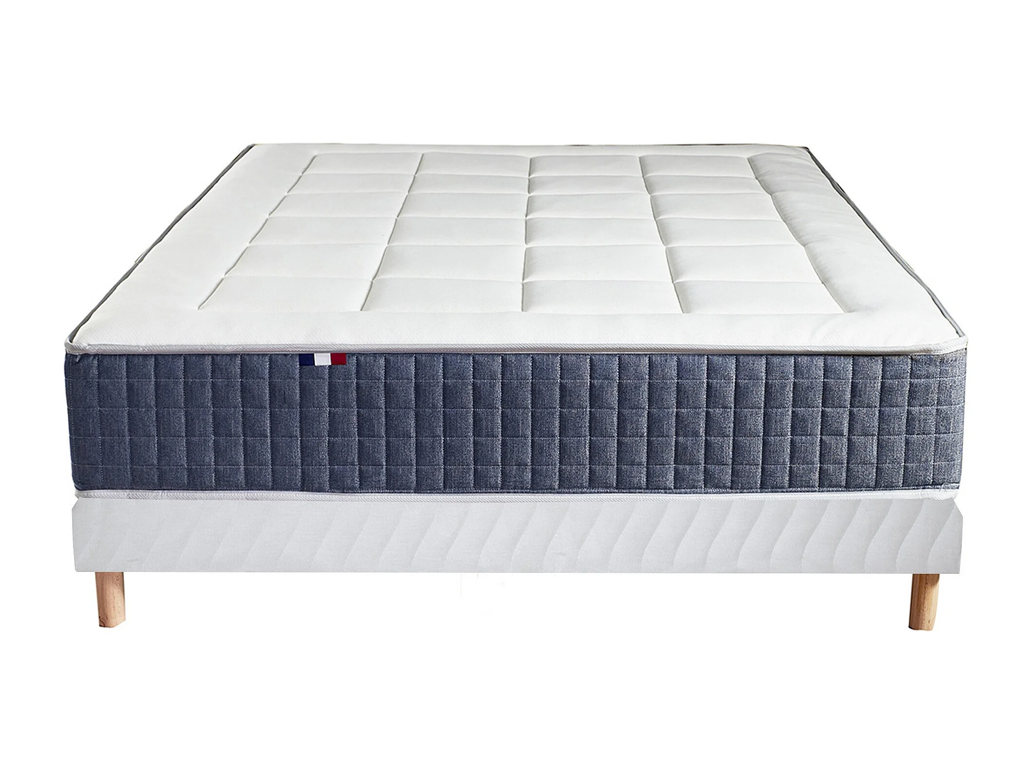 Ensemble Matelas Ressort 7 zones + Mémoire de forme + Sommier KING STYLE Fabriqué en France Dimensions - 140 x 190 cm, Sommier - Blanc