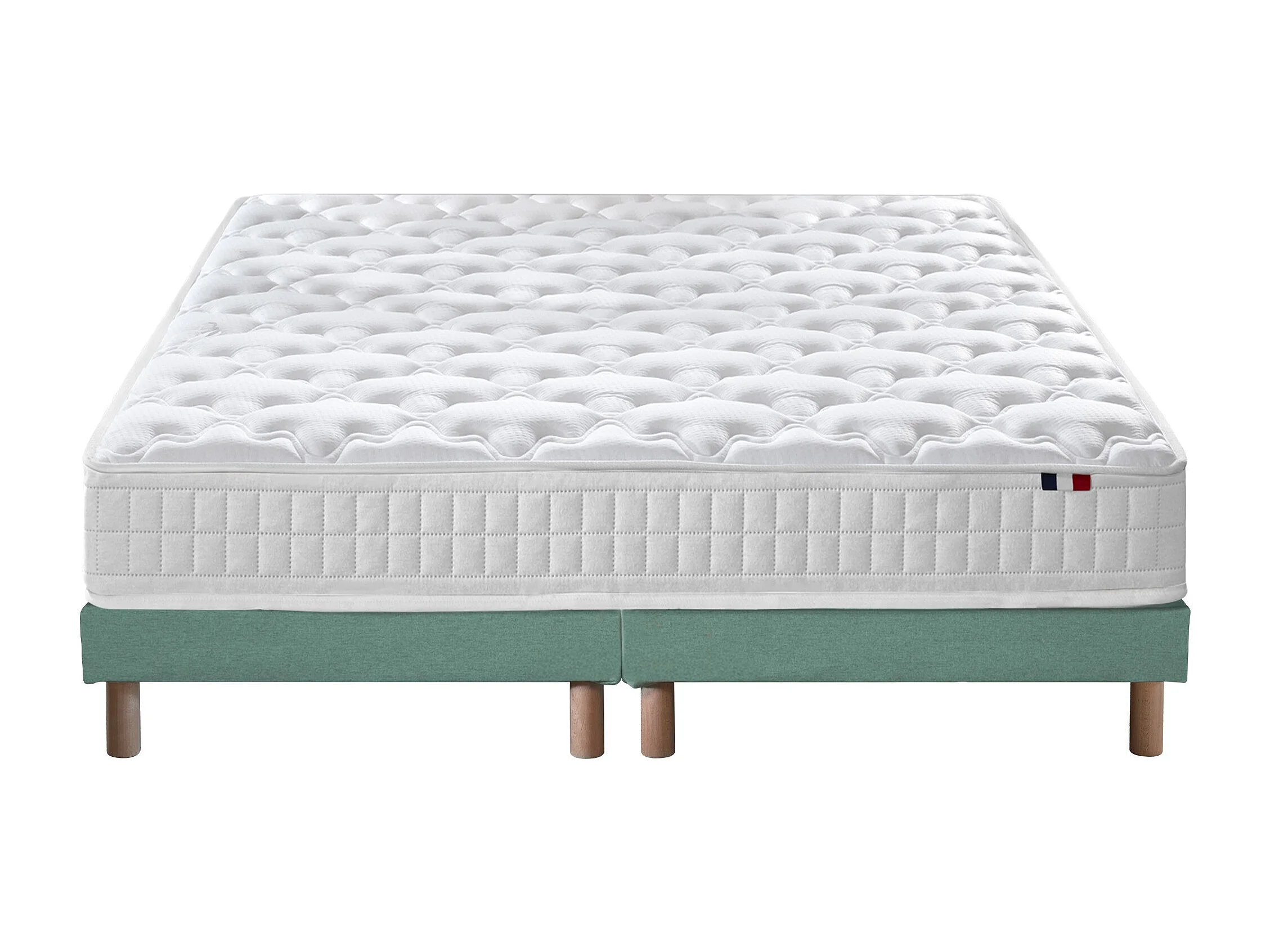 Ensemble matelas à ressorts 5 zones ÉTOILE avec sommier - confort français Dimensions - 2x80 x 200 cm, Sommier - Vert celadon