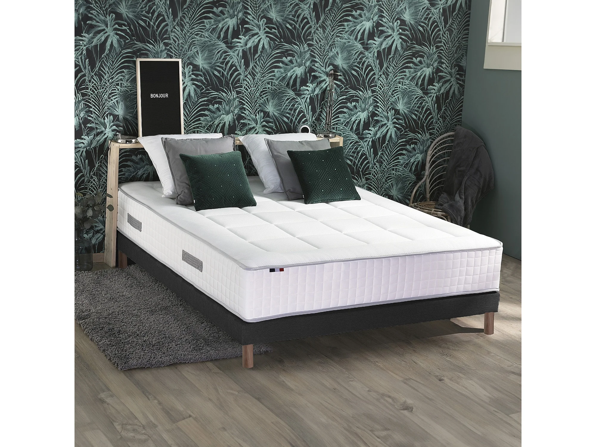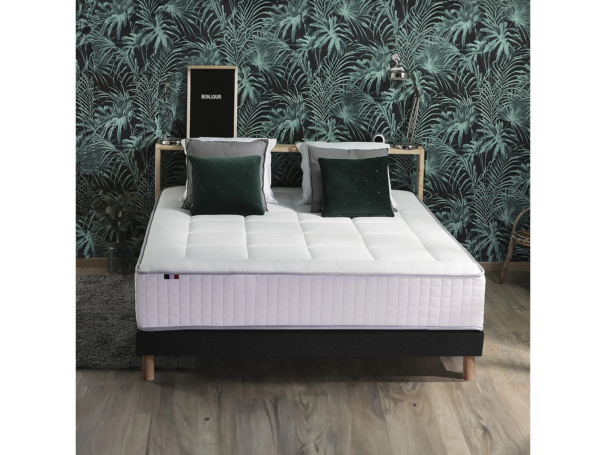 Ensemble matelas Ressorts 7 zones H28cm + sommier PALACIO 2 FABRICATION FRANCAISE Dimensions - 140 x 190 cm, Sommier - Noir
