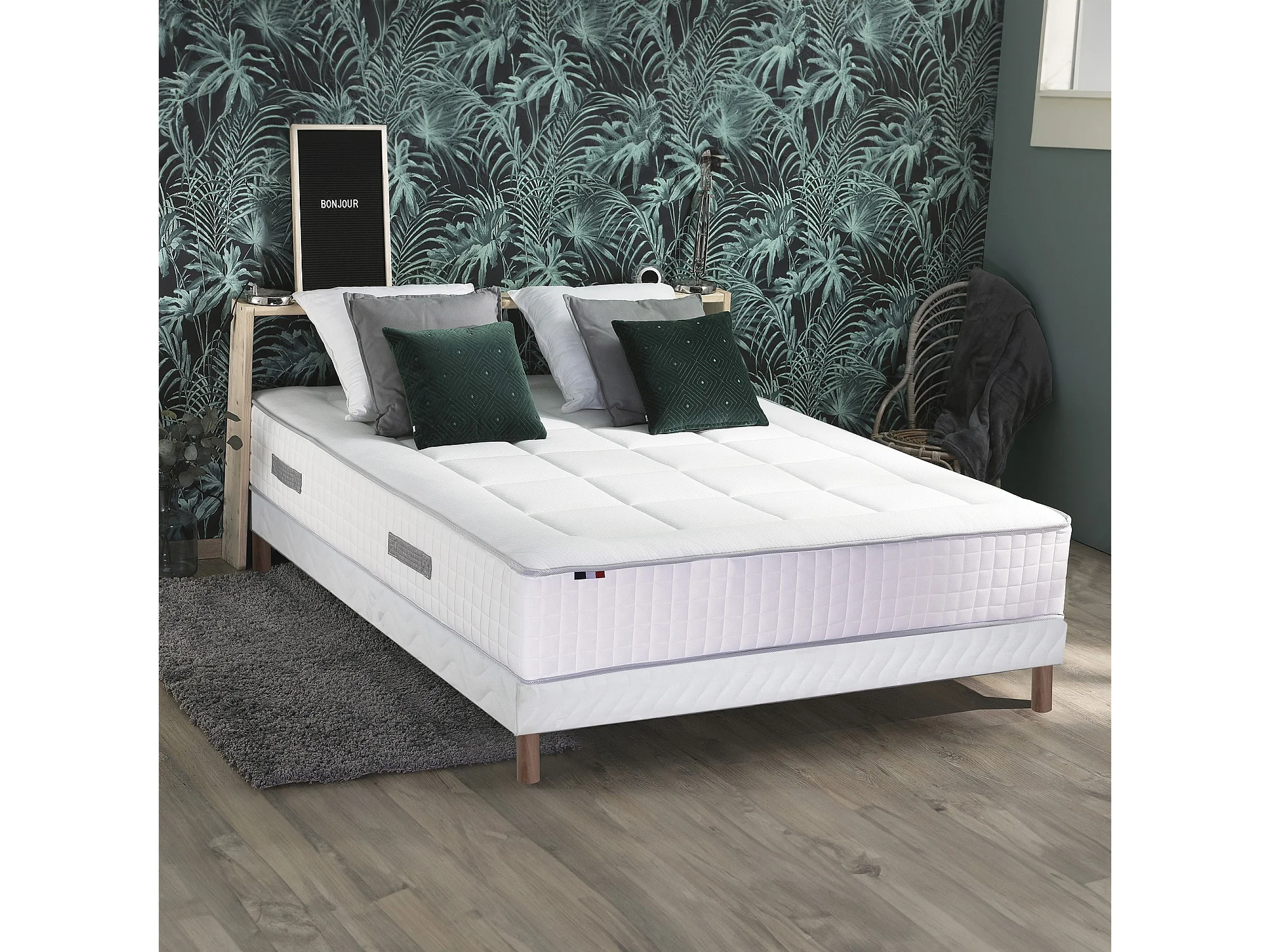 Ensemble matelas Ressorts 7 zones H28cm + sommier PALACIO 2 FABRICATION FRANCAISE Dimensions - 160 x 200 cm, Sommier - Blanc