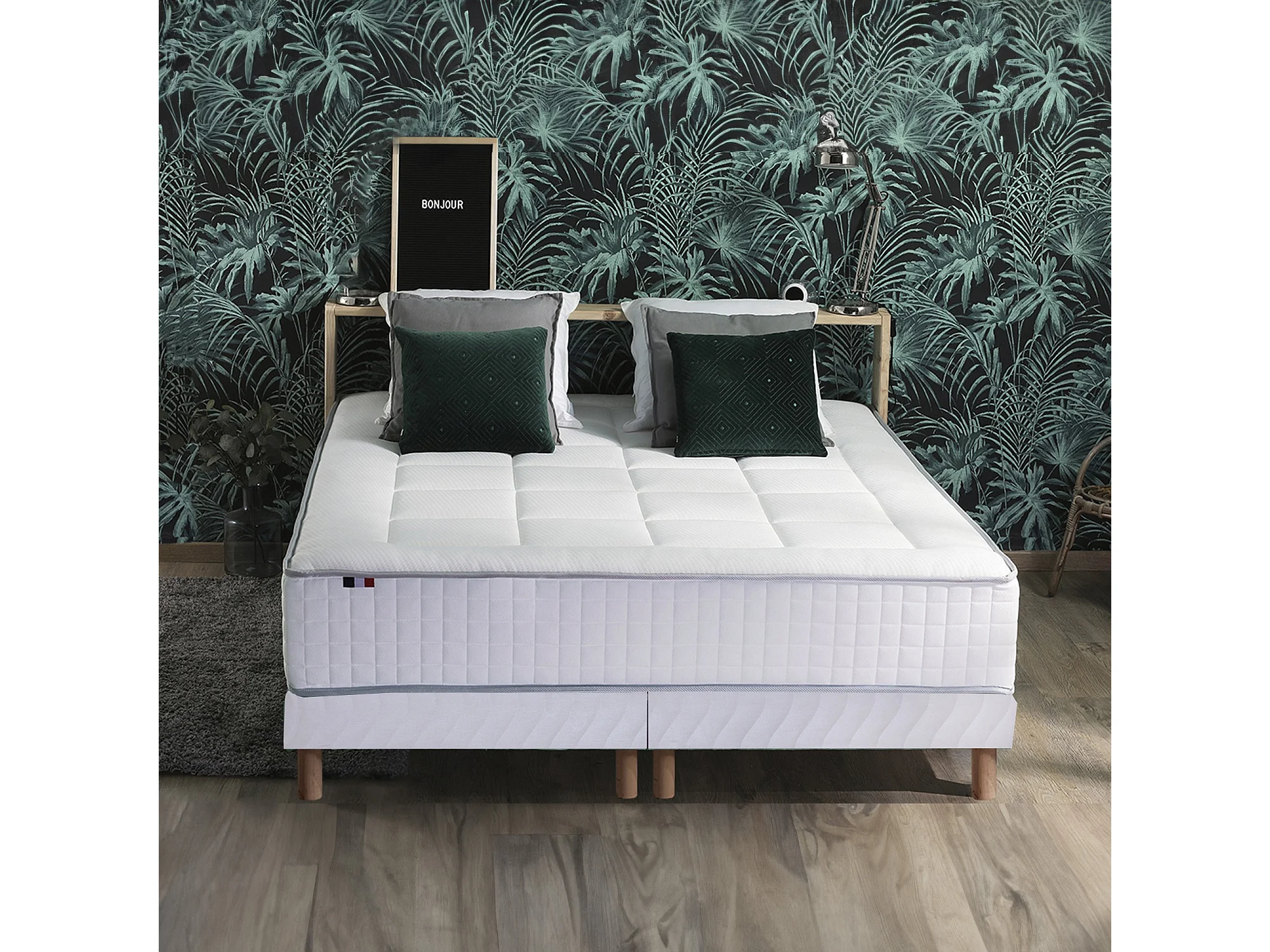 Ensemble matelas Ressorts 7 zones H28cm + sommier PALACIO 2 FABRICATION FRANCAISE Dimensions - 2x80 x 200 cm, Sommier - Blanc