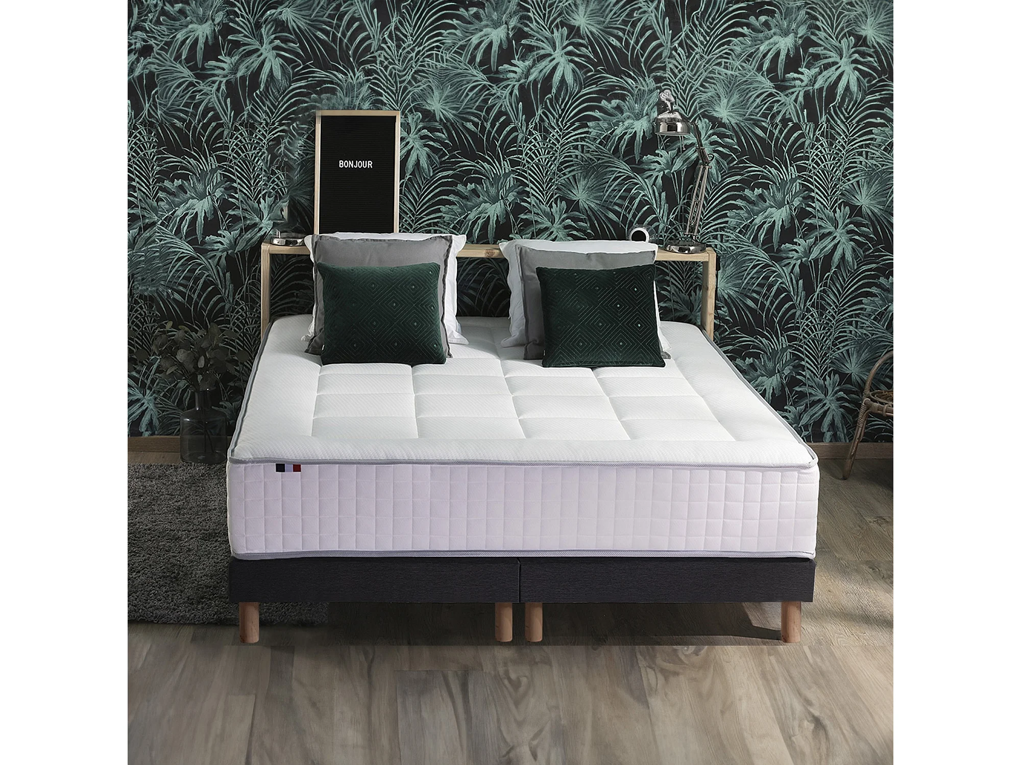 Ensemble matelas Ressorts 7 zones H28cm + sommier PALACIO 2 FABRICATION FRANCAISE Dimensions - 2x90 x 200 cm, Sommier - Noir