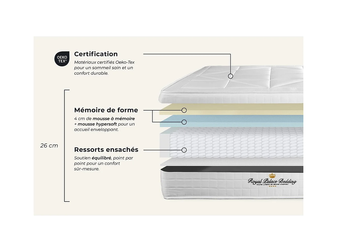 Ensemble matelas ressorts ensachés + mémoire de forme maxi épaisseur Windsor 160x200 double sommier