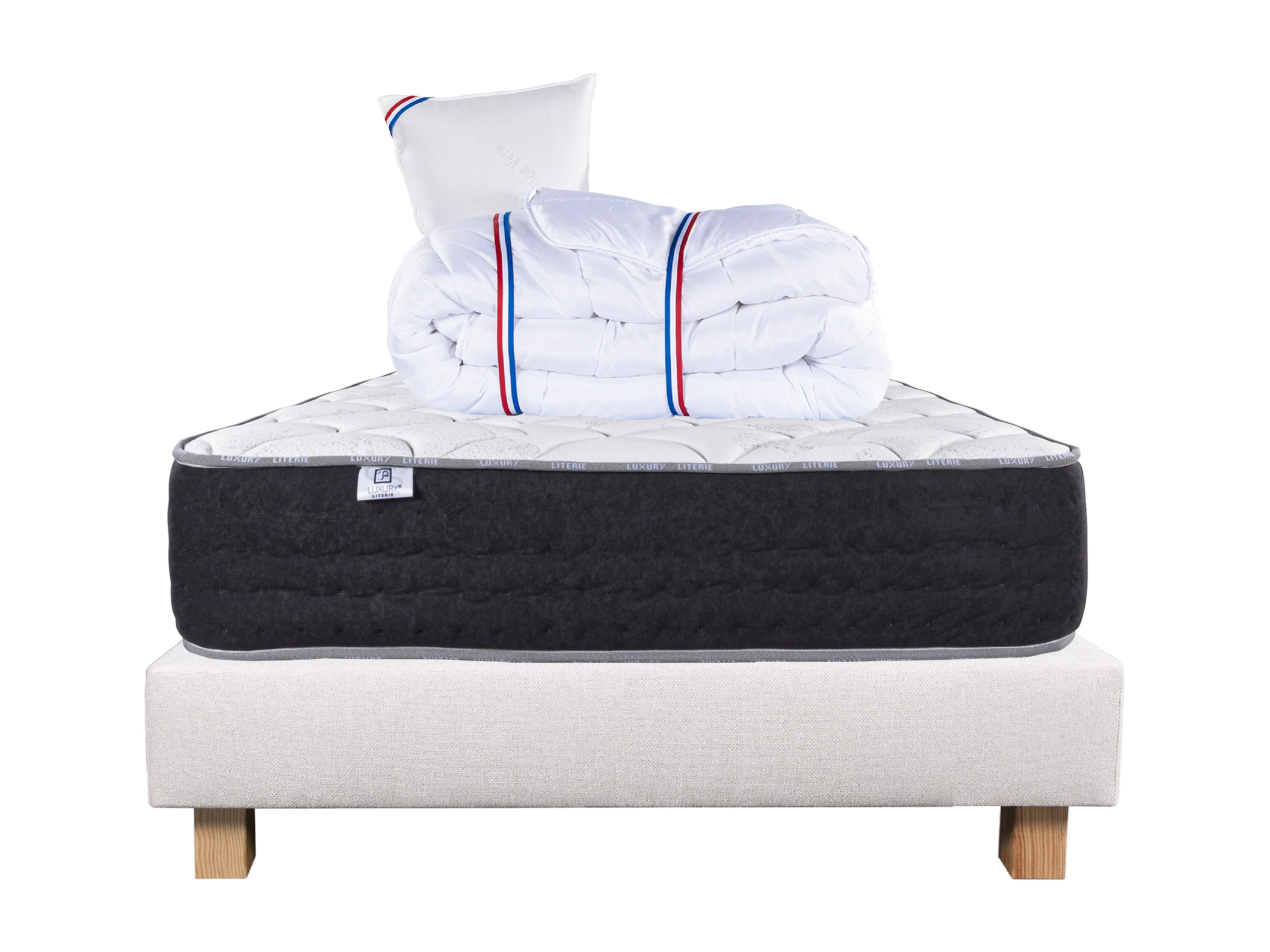 Ensemble Matelas 90x190 cm, Sérénité, 27 cm + sommier beige + oreiller + couette