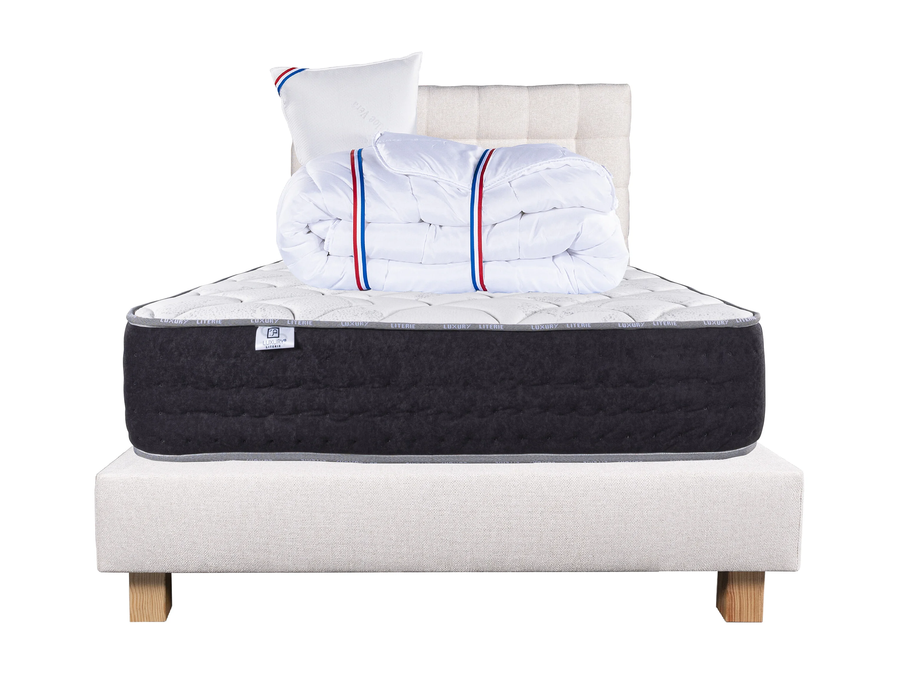 Ensemble Matelas 90x190 cm, Sérénité, 27 cm + sommier beige + oreiller + couette + TDL