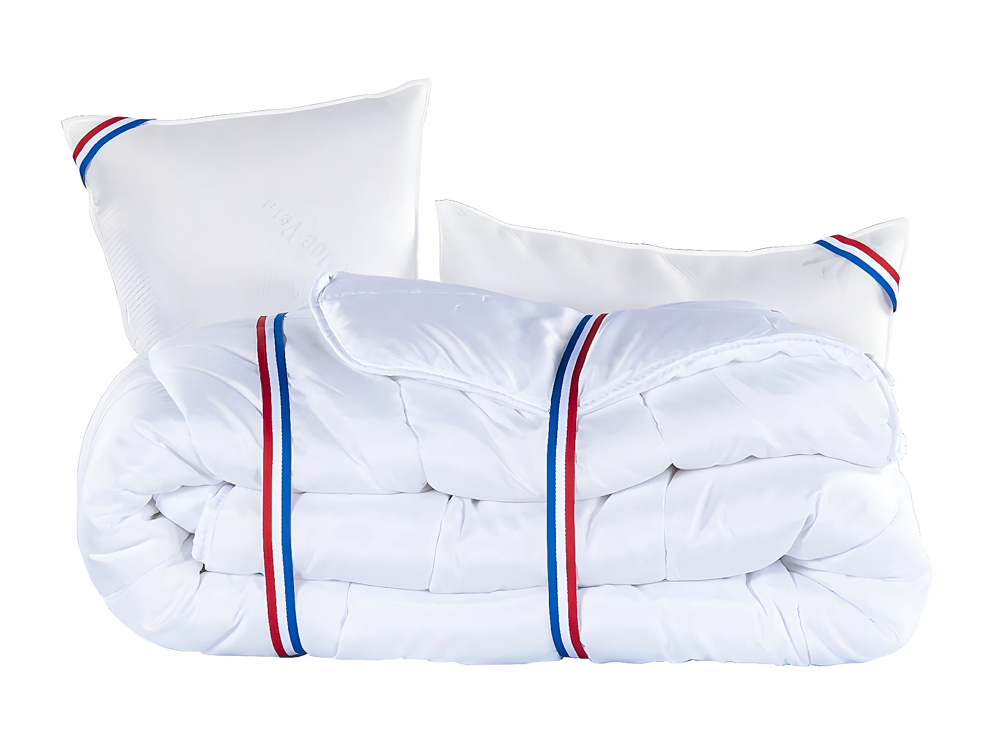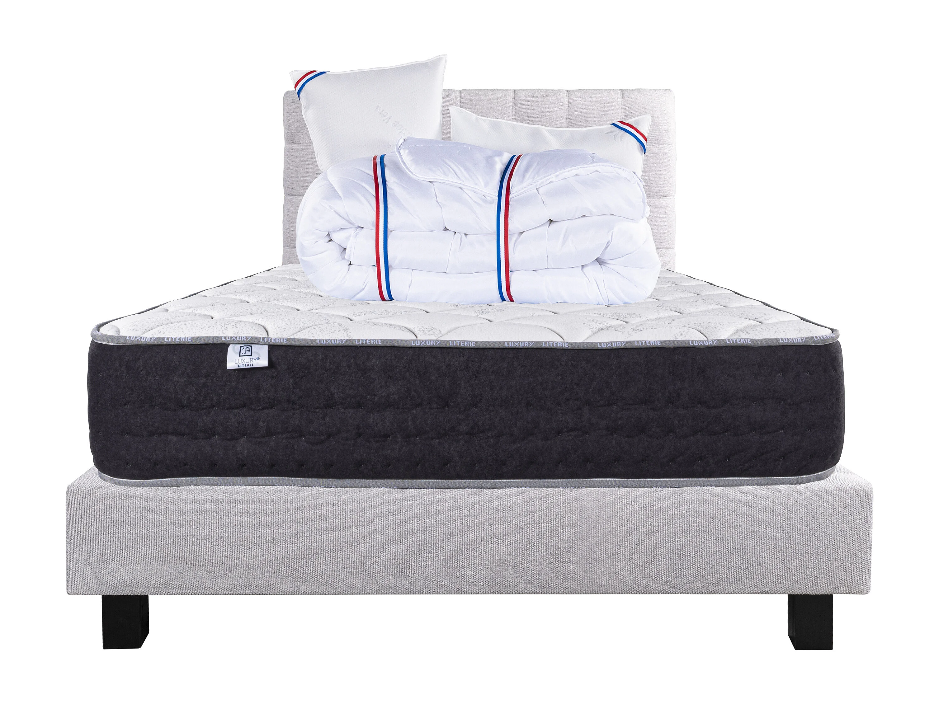 Ensemble Matelas 140x190 cm, Sérénité, 27 cm + sommier gris + 2 oreillers + couette + TDL