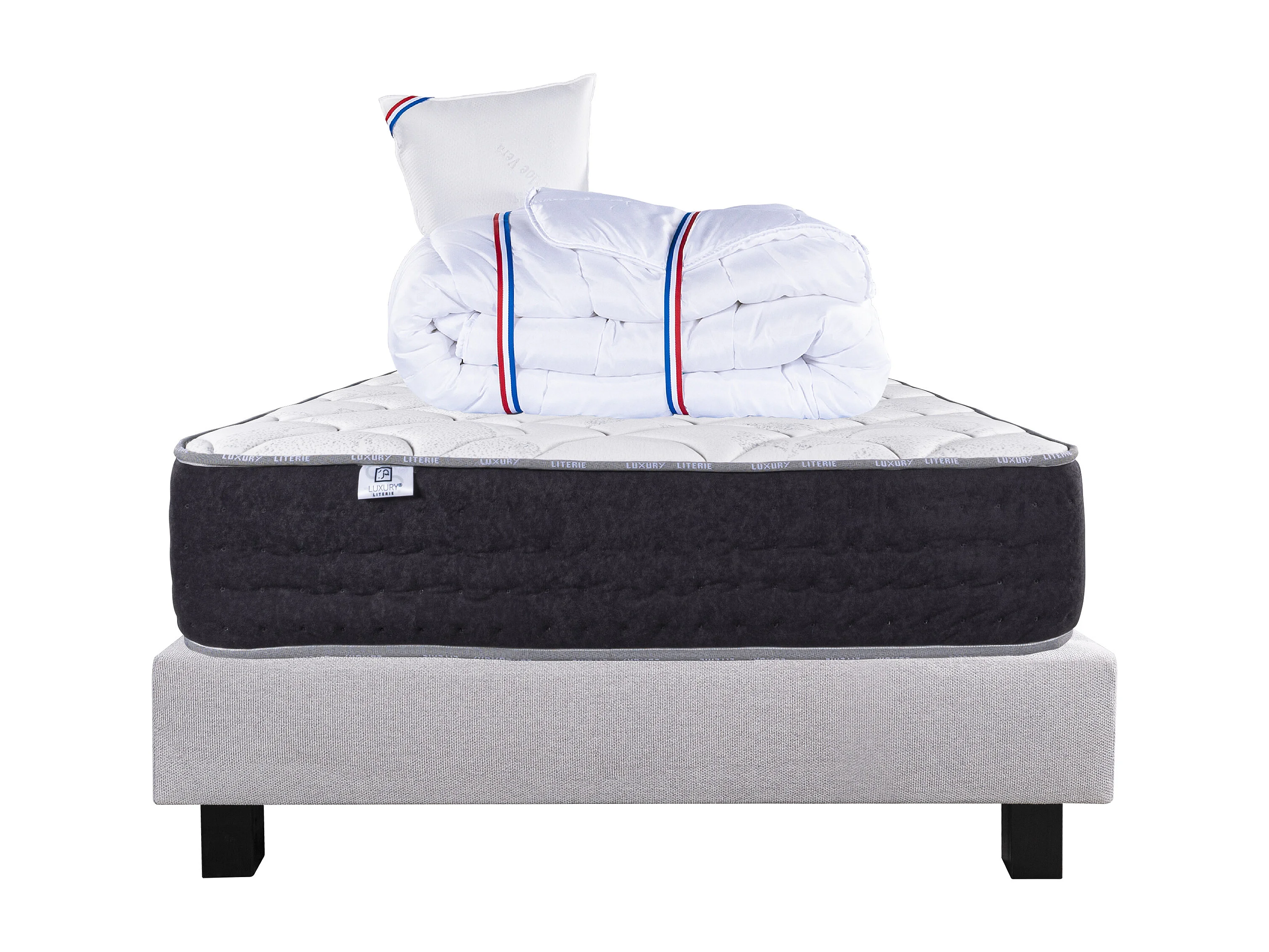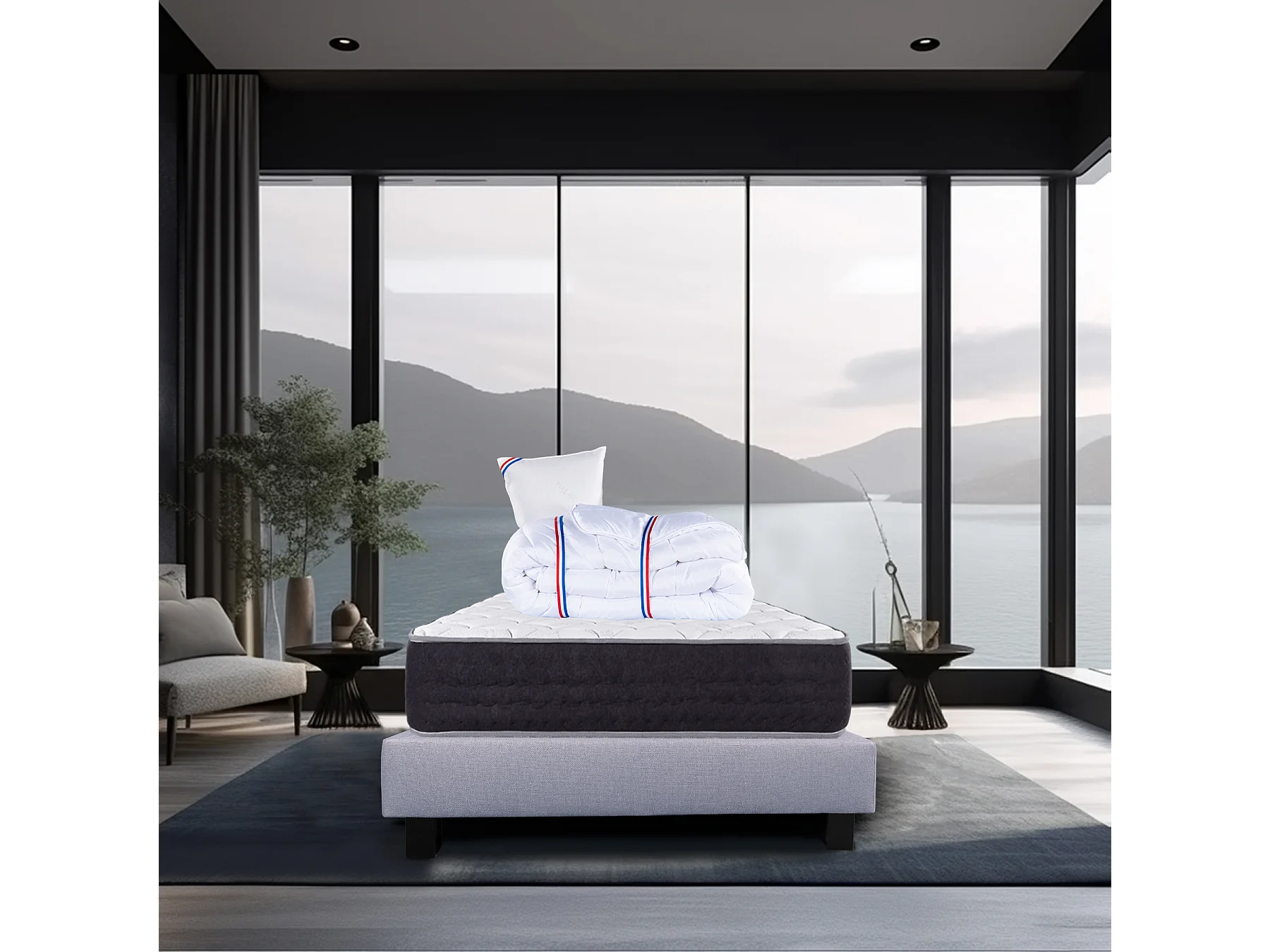 Ensemble Matelas 90x190 cm, Sérénité, 27 cm + sommier gris + oreiller + couette