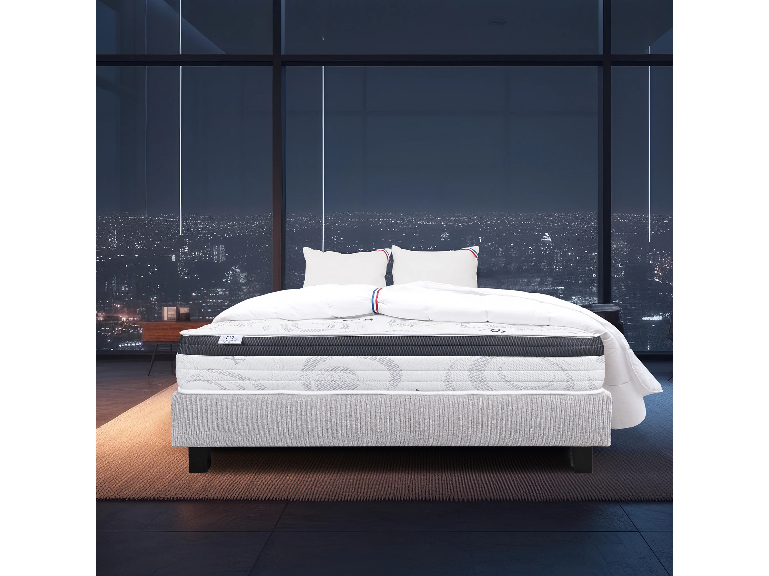 Ensemble Matelas 160x200 cm, Sleeplux, 26 cm + sommier gris + 2 oreillers + couette