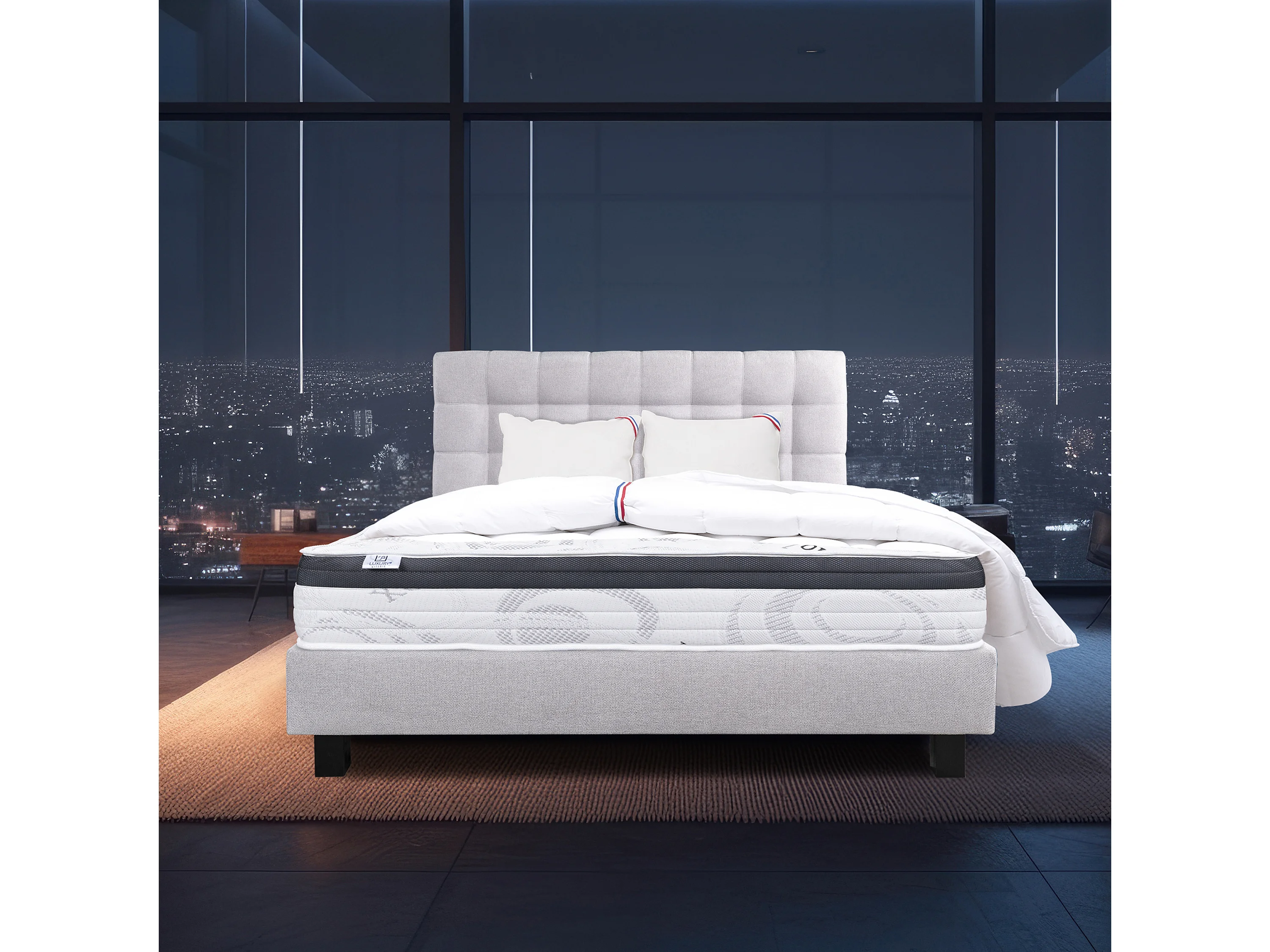 Ensemble Matelas 140x190 cm, Sleeplux, 26 cm + sommier gris + 2 oreillers + couette + TDL