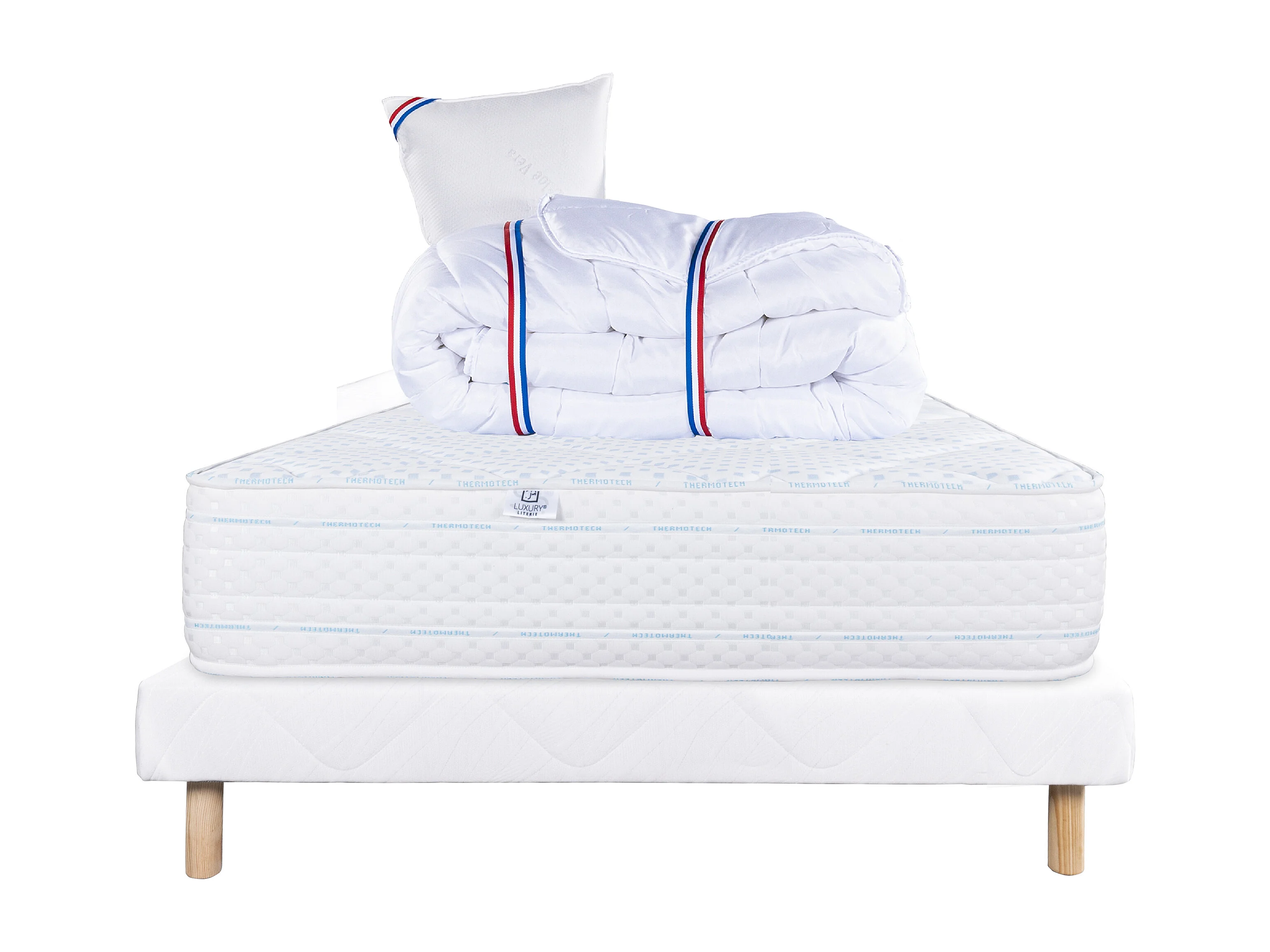 Ensemble Matelas 90x190 cm, Thermotec, 24 cm + sommier blanc + oreiller + couette