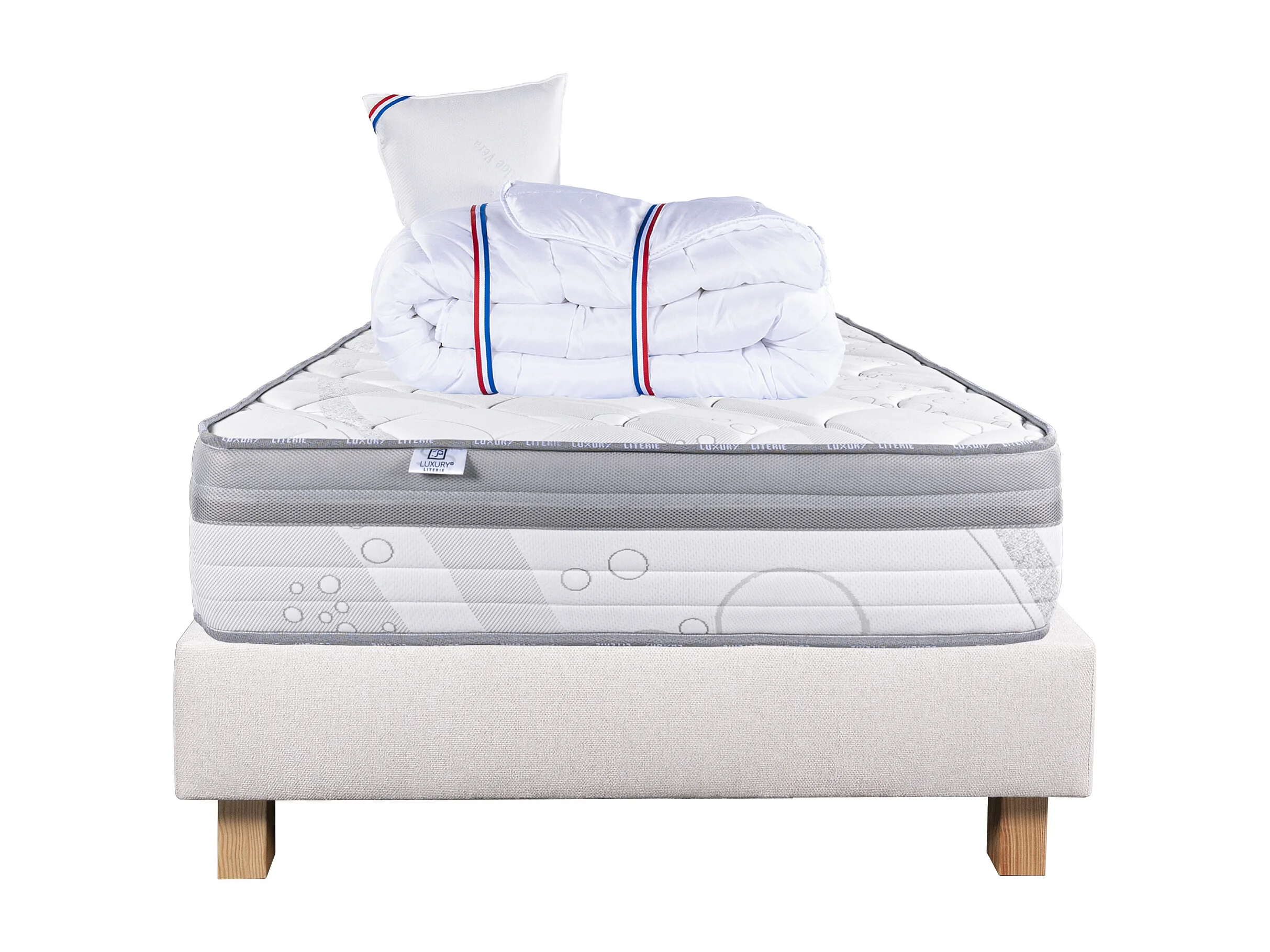 Ensemble Matelas 90x190 cm, ViscoPlus, 26 cm + sommier beige + oreiller + couette