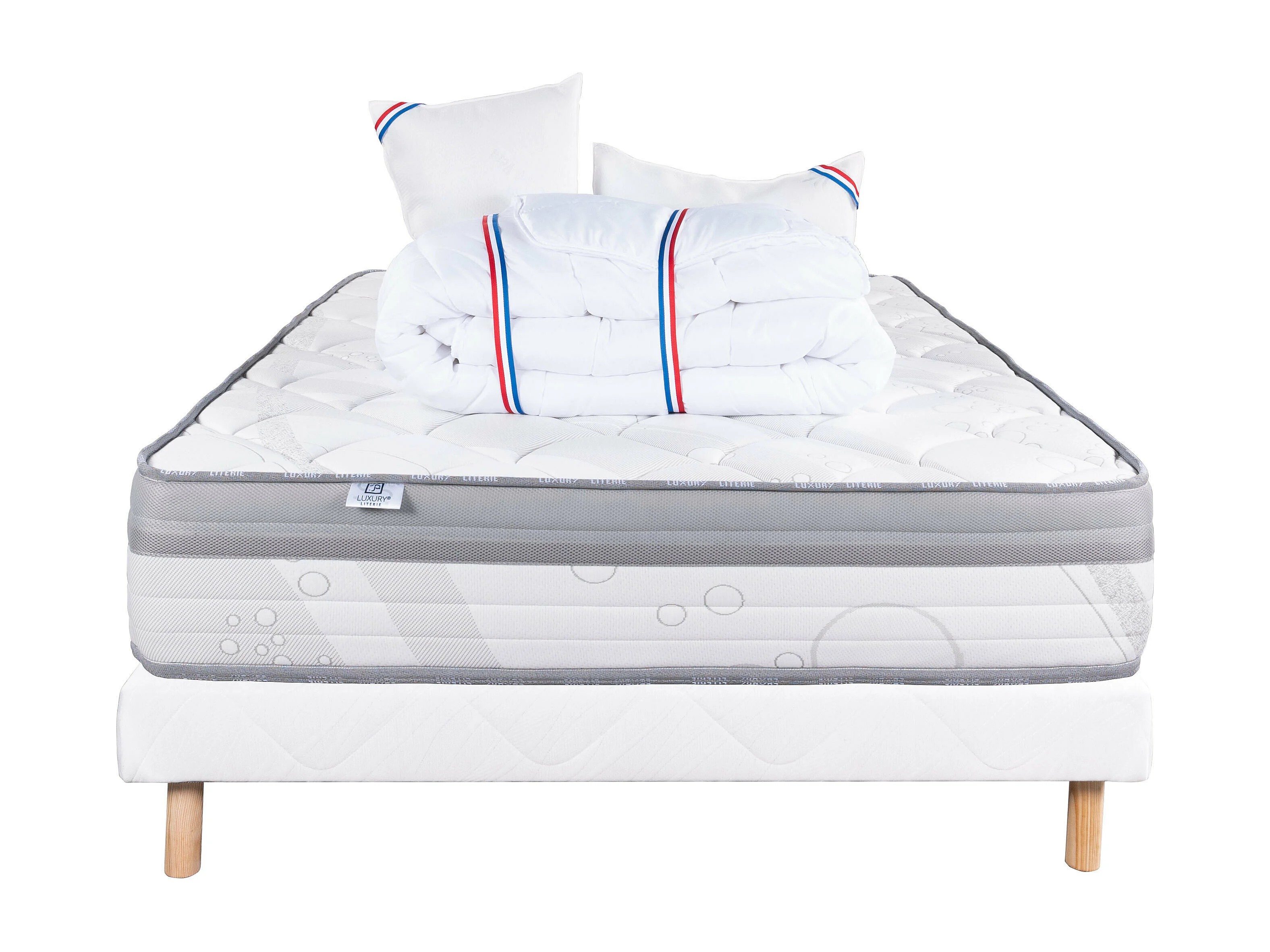 Ensemble Matelas 140x190 cm, ViscoPlus, 26 cm + sommier blanc + 2 oreillers + couette