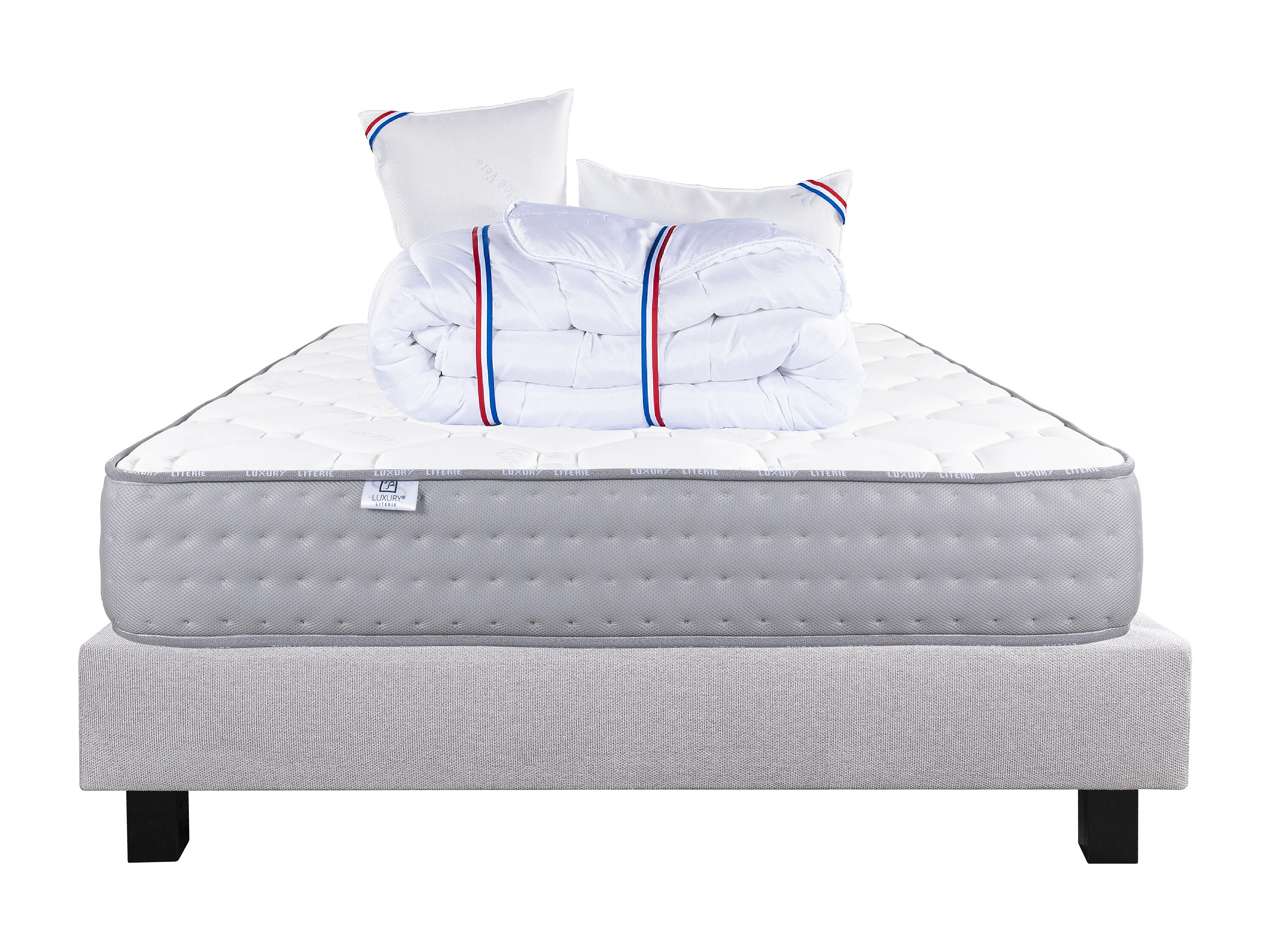 Ensemble Matelas 140x200 cm, Zen, 20 cm + sommier gris + 2 oreillers + couette