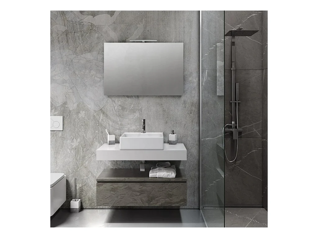 Ensemble meuble de salle de bain 1 tiroir blanc et gris effet pierre et miroir lumineux Kyo L 90cm