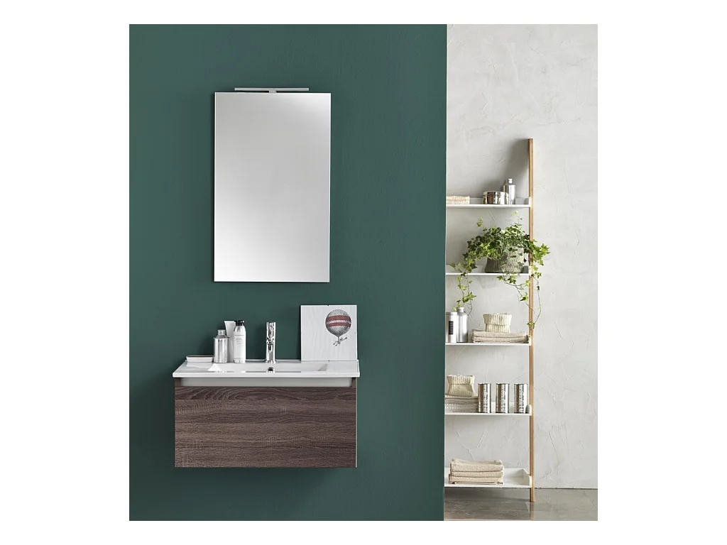 Ensemble meuble de salle de bain 1 tiroir bois foncé et miroir lumineux Teph L 70cm