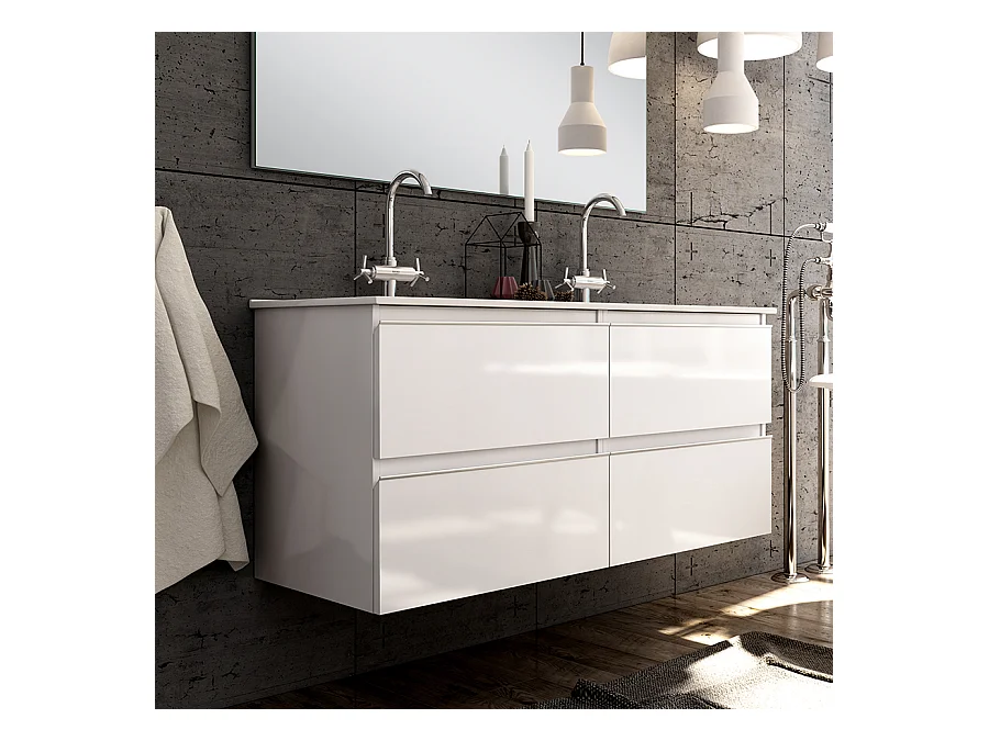 Ensemble meuble de salle de bain 140cm double vasque + colonne de rangement - BALEA - blanc