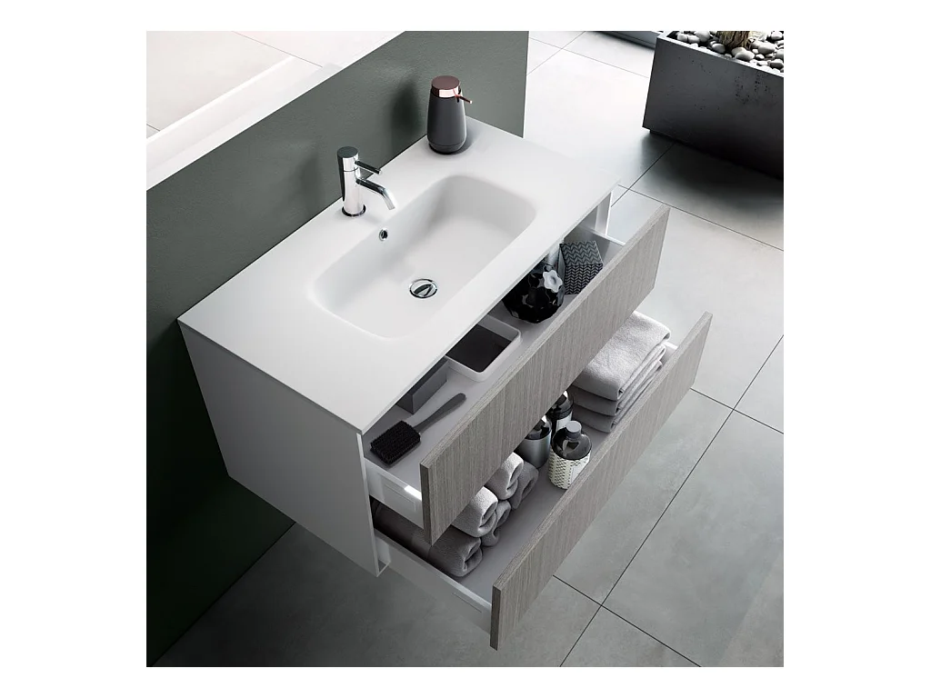 Ensemble meuble de salle de bain 2 tiroirs laqué blanc et gris et miroir à LED Oga L 80cm
