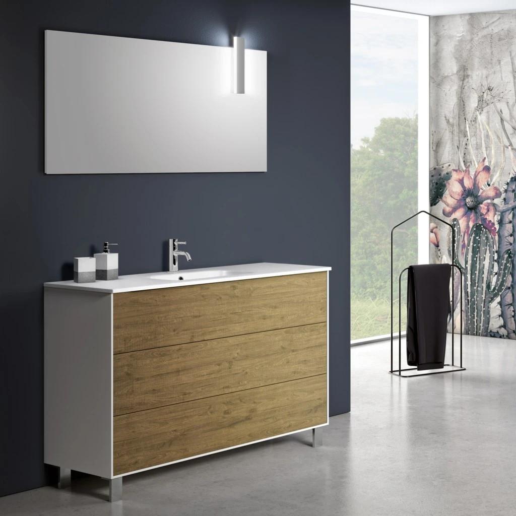 Ensemble meuble de salle de bain 3 tiroirs bois blanc et chêne et miroir à LED Lago L 120cm