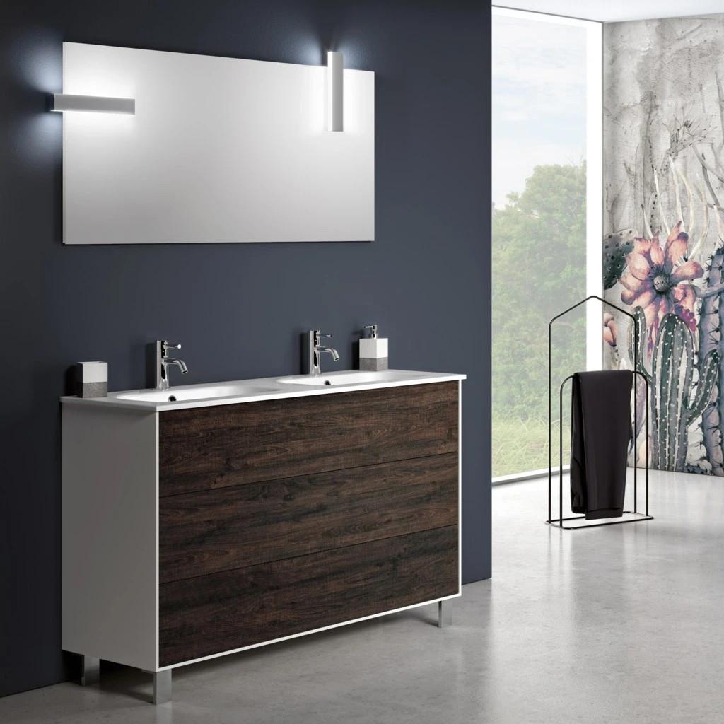 Ensemble meuble de salle de bain 3 tiroirs bois blanc et marron et miroir à LED Lago L 120cm