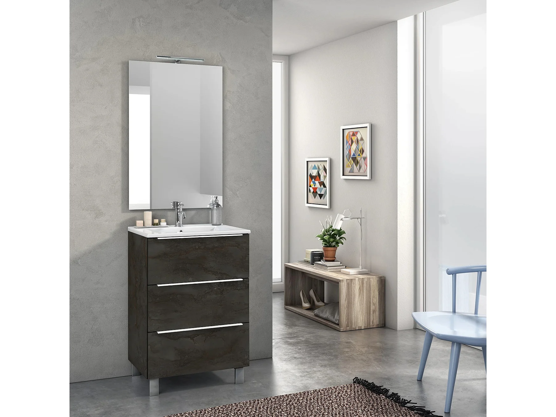 Ensemble meuble de salle de bain 3 tiroirs bois gris oxyde et miroir lumineux Malo L 60cm