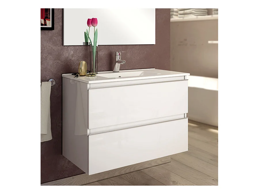Ensemble meuble de salle de bain 60cm simple vasque + colonne de rangement - BALEA - blanc