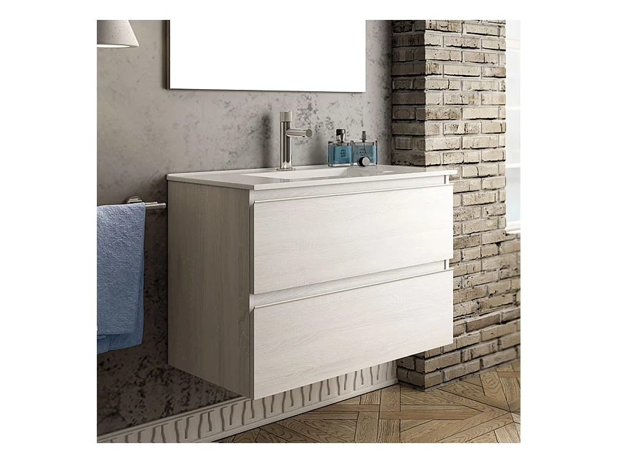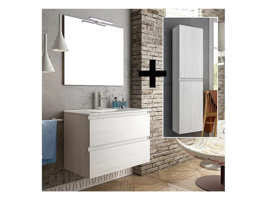 Ensemble meuble de salle de bain 60cm simple vasque + colonne de rangement - BALEA - hibernian (bois blanchi)
