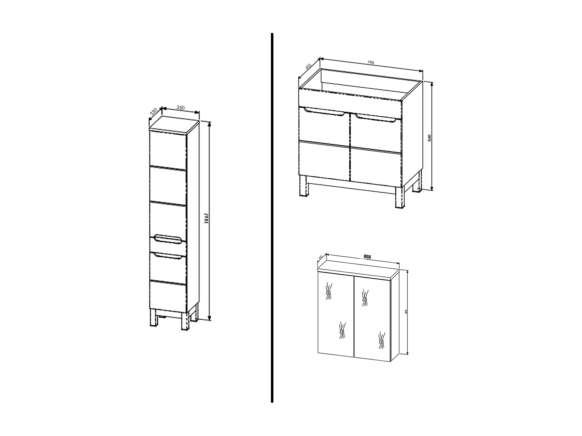Ensemble meuble de salle de bain - 80 cm - avec vasque à encastrer - avec colonne - avec Armoire Miroir - BALI WHITE