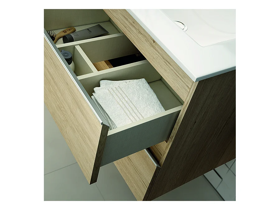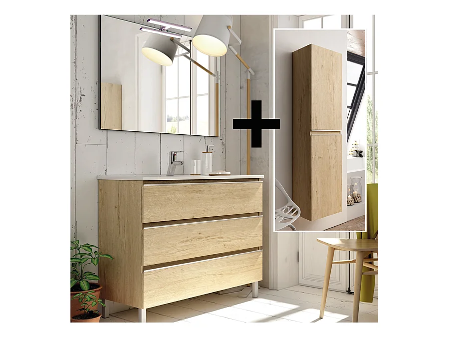 Ensemble meuble de salle de bain 80cm simple vasque + colonne de rangement PALMA - bambou (chêne clair)