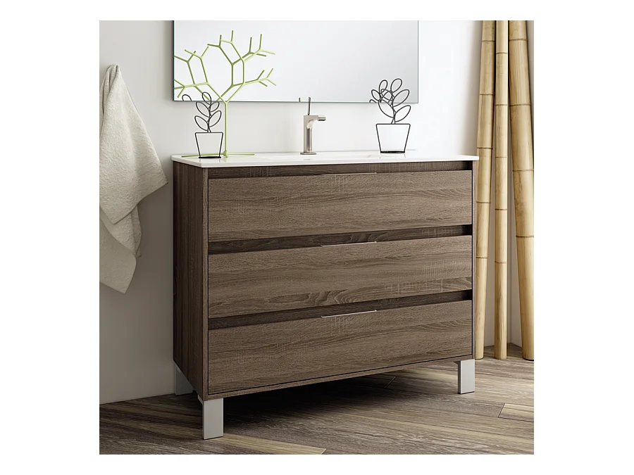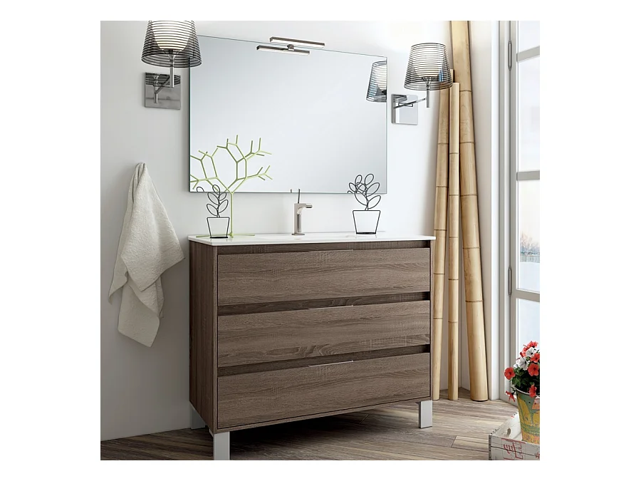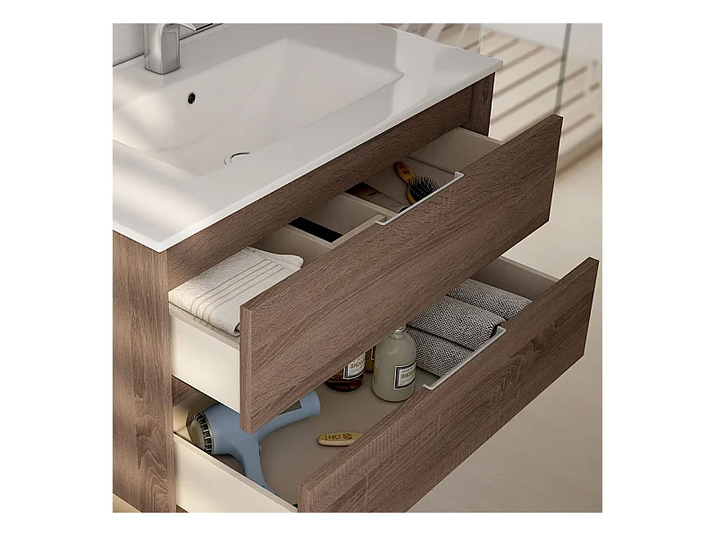 Ensemble meuble de salle de bain 80cm simple vasque + colonne de rangement TIRIS - britannia (chêne foncé)