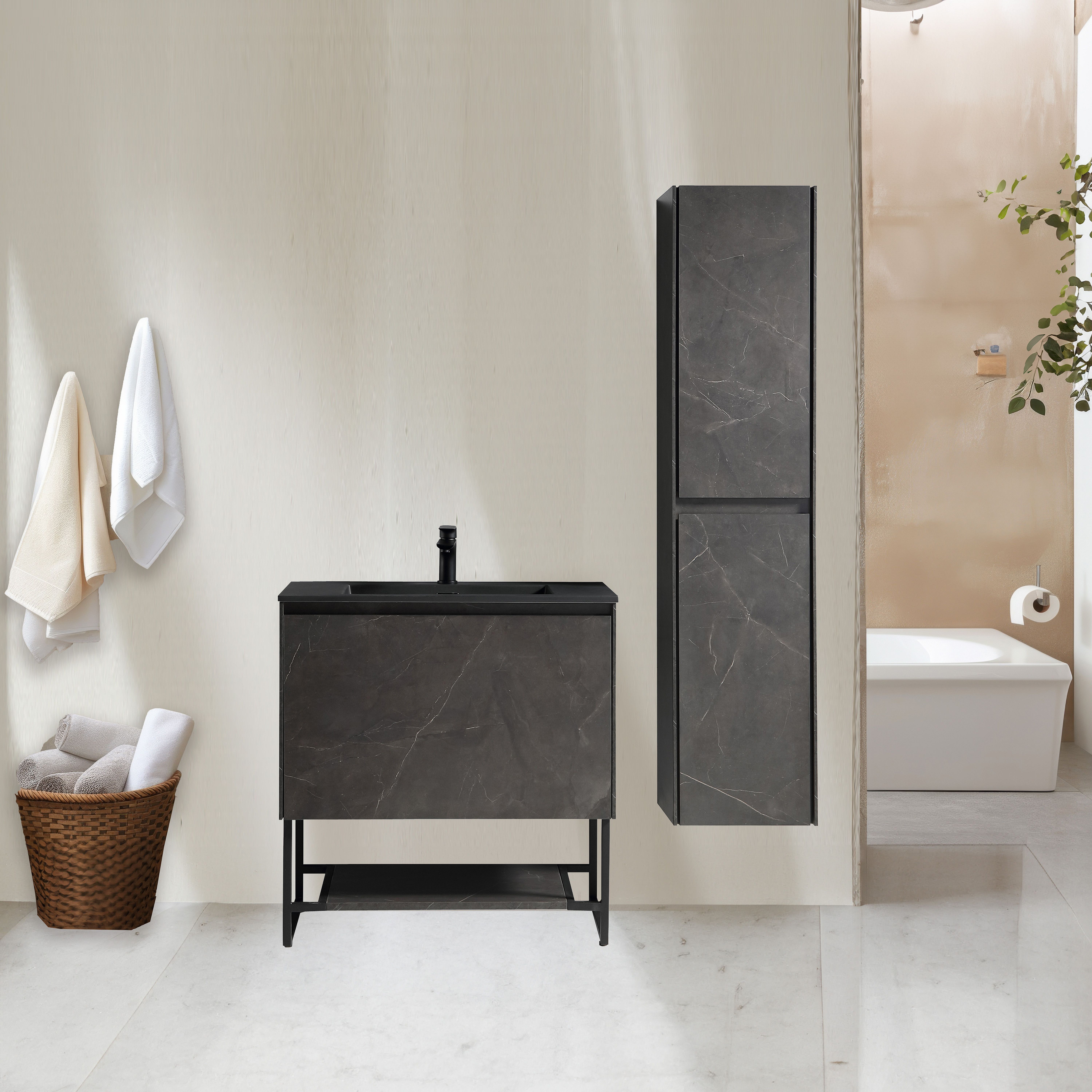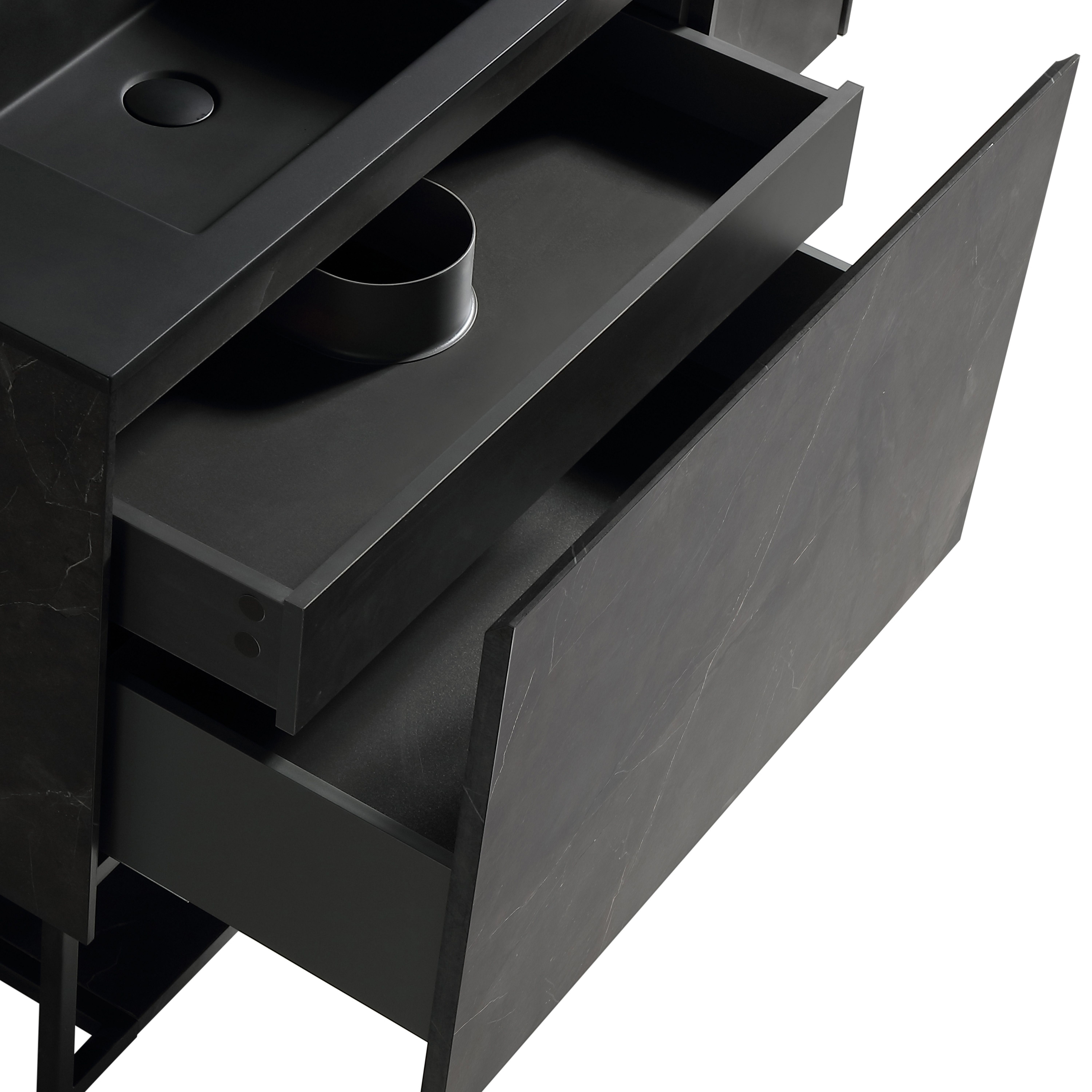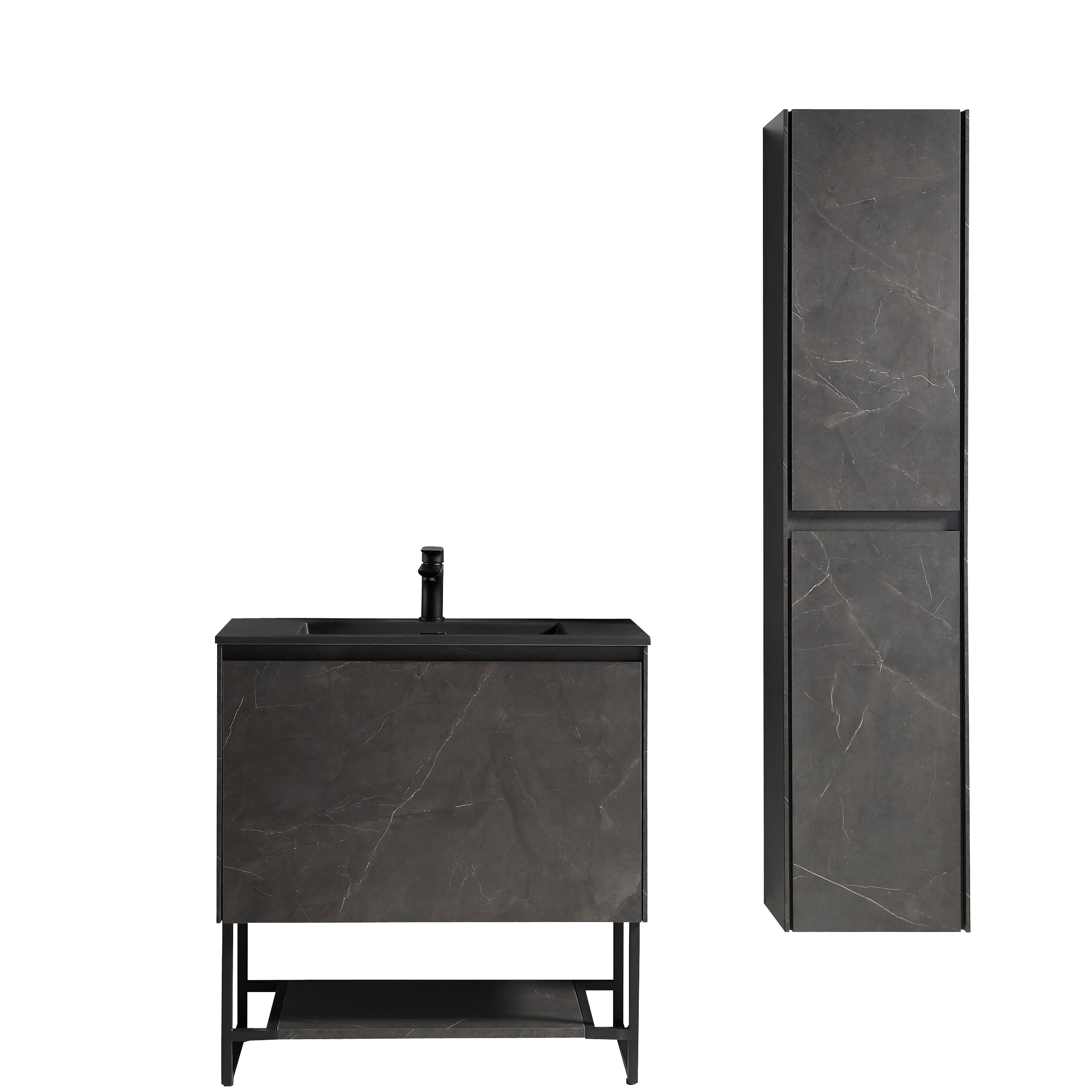 Ensemble meuble salle de bain 90 cm noir effet marbre Aquabella