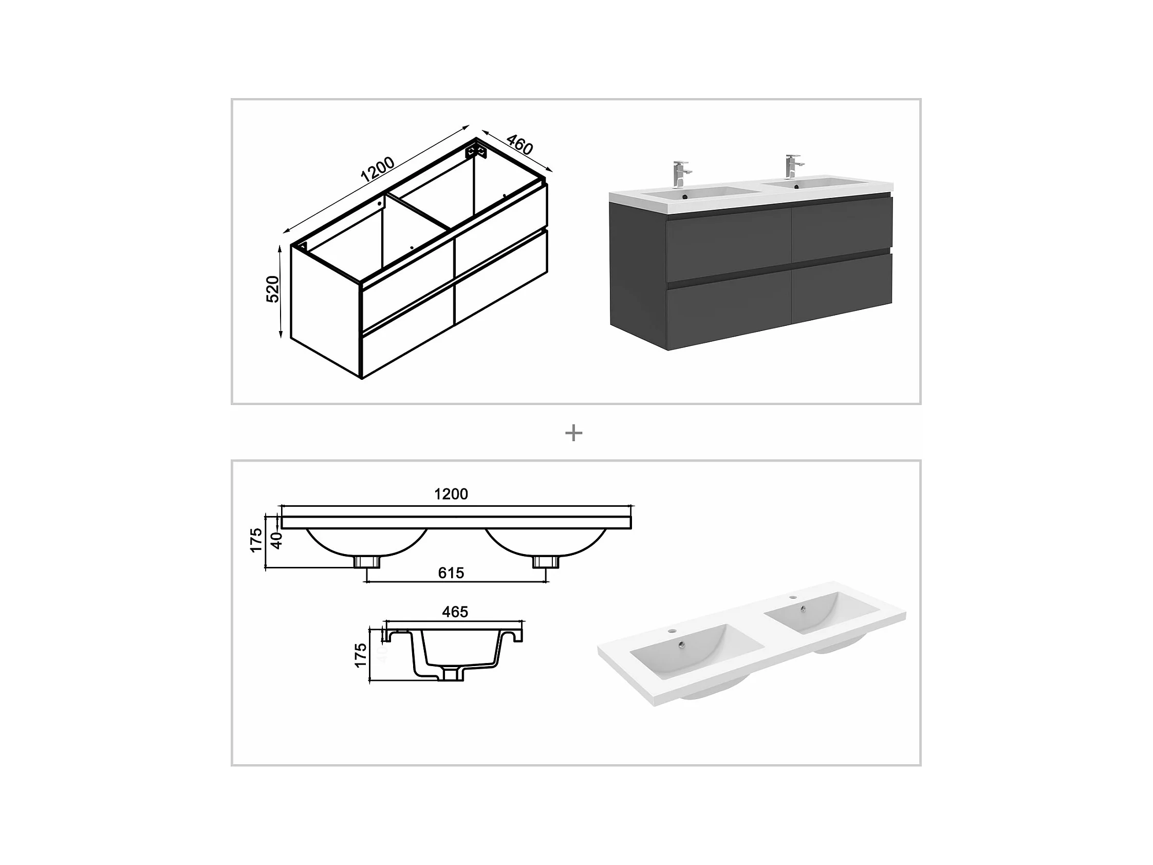Ensemble meuble de salle de bains 120cm, vasque + colonne + LED miroir mural,anthracite