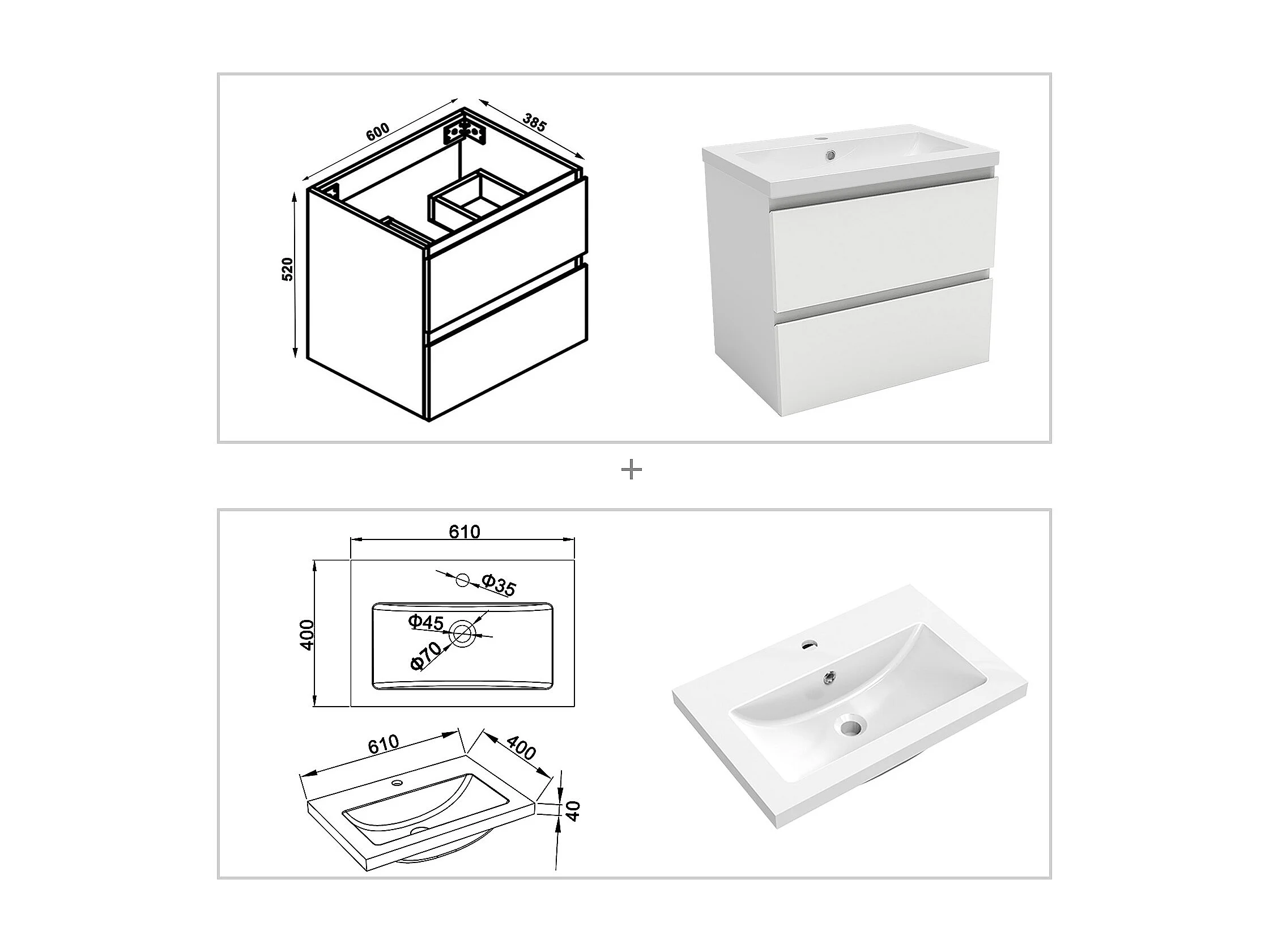 Ensemble meuble de salle de bains 60cm vasque + colonne + miroir mural,blanc