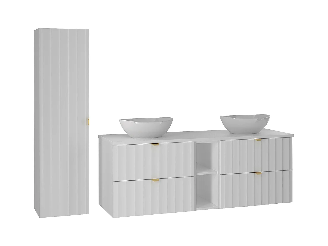 Ensemble meuble double vasque 140cm 2 niches et colonne Lexa Blanc