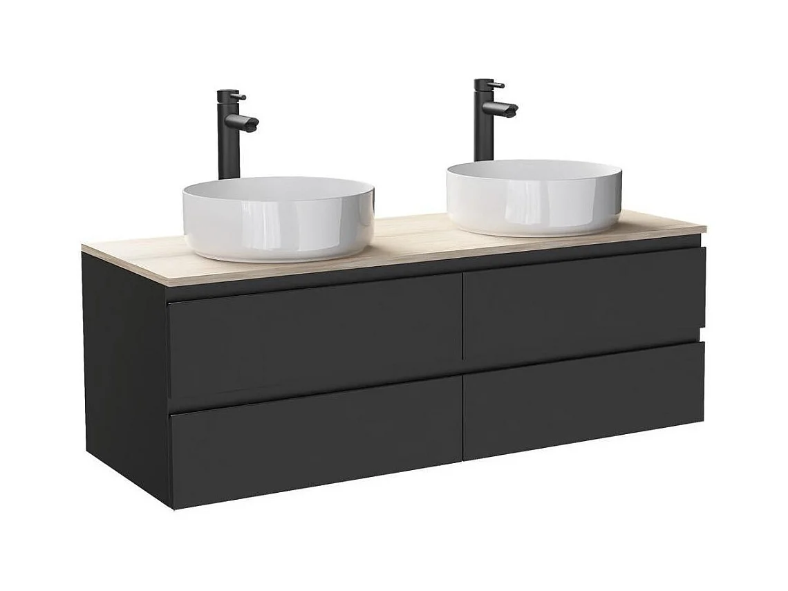 Ensemble double vasque suspendu avec plan bois, vasques et robinets 120 cm