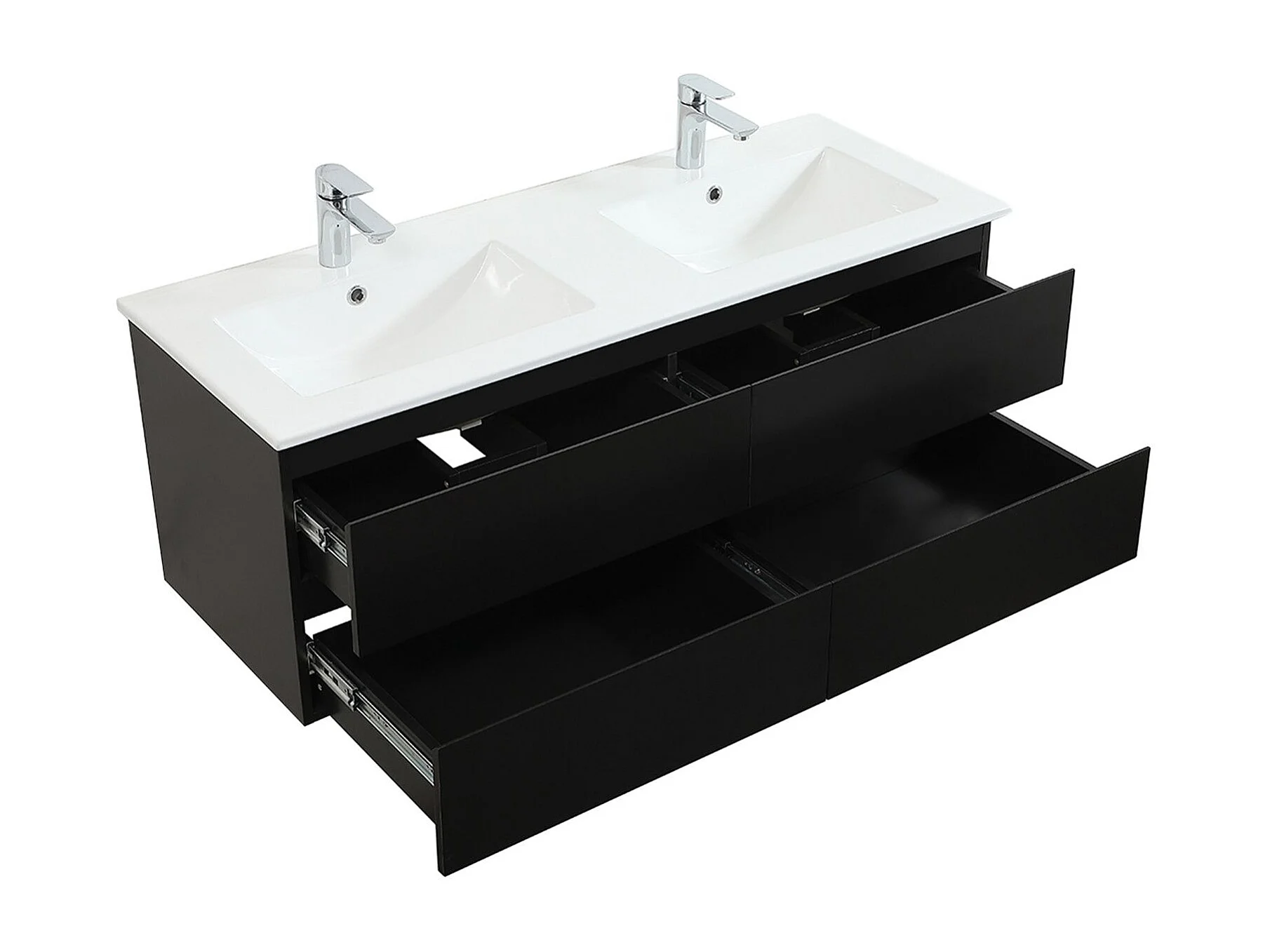 Ensemble meuble double vasque noir carbone 120cm + vasque + colonne