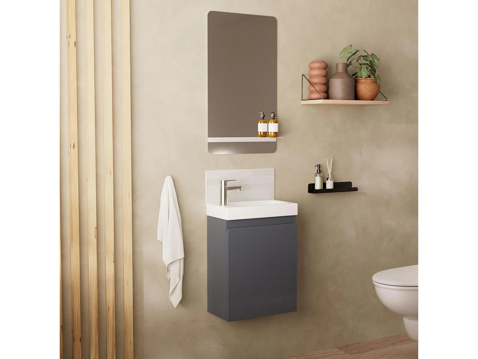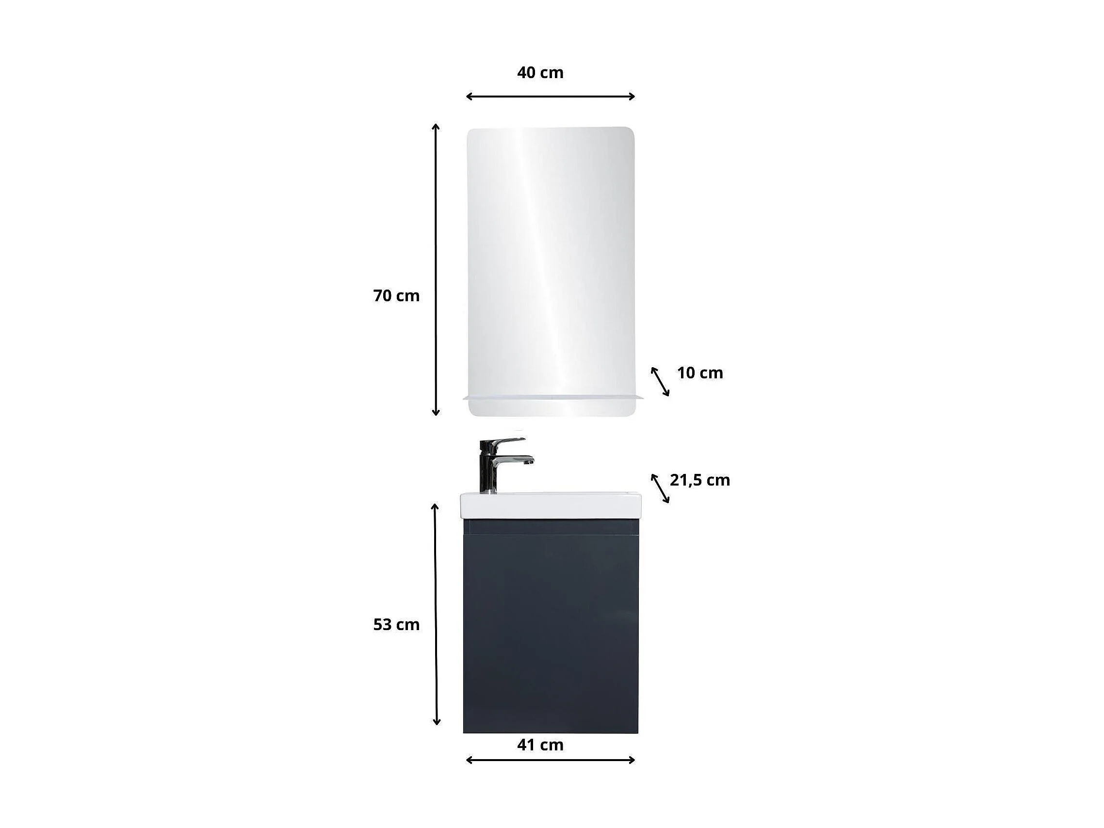 Meuble lave-mains LISA + robinet chromé + miroir rectangulaire