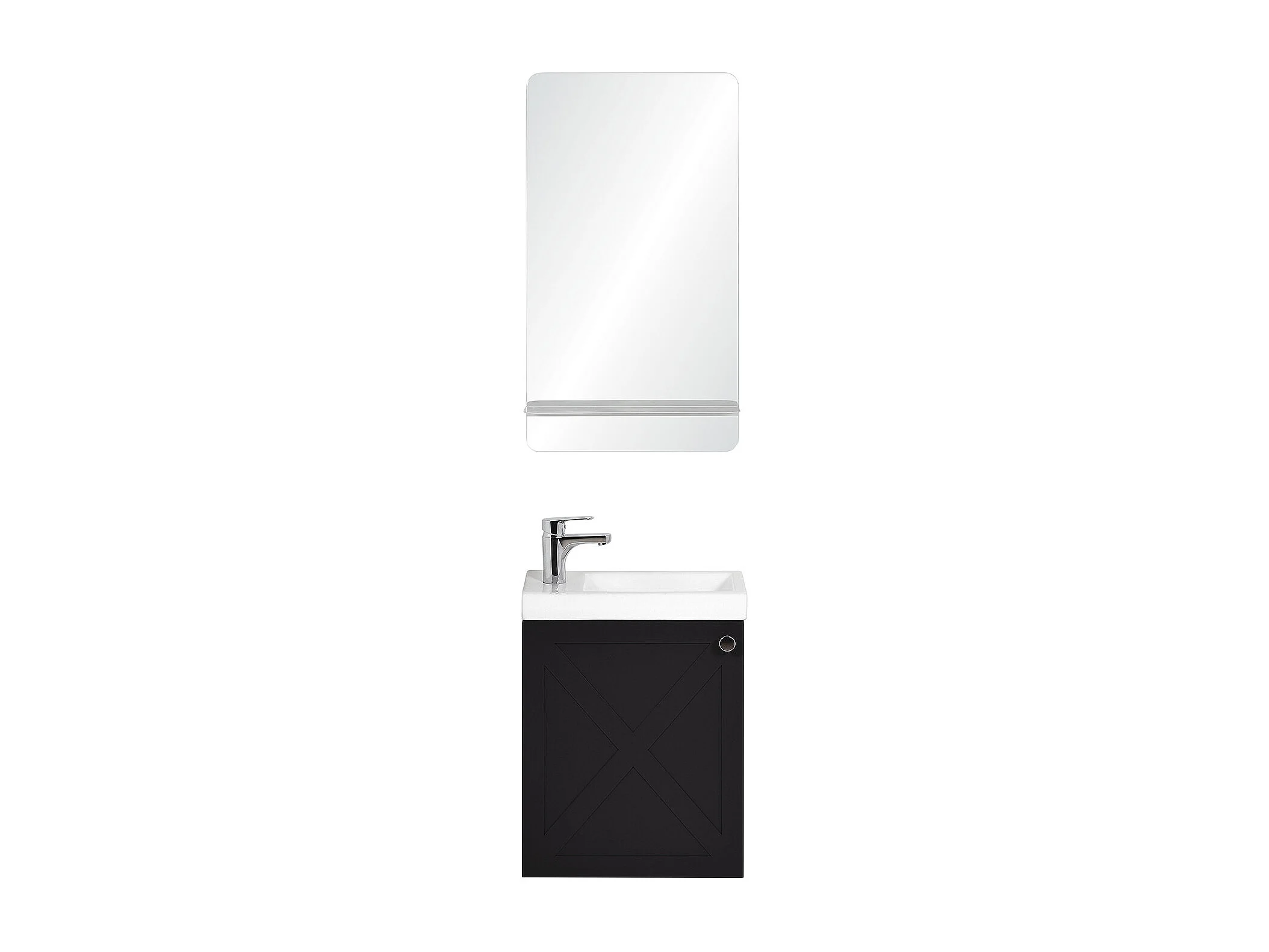 Meuble lave-mains AVA noir carbone + miroir tablette blanche