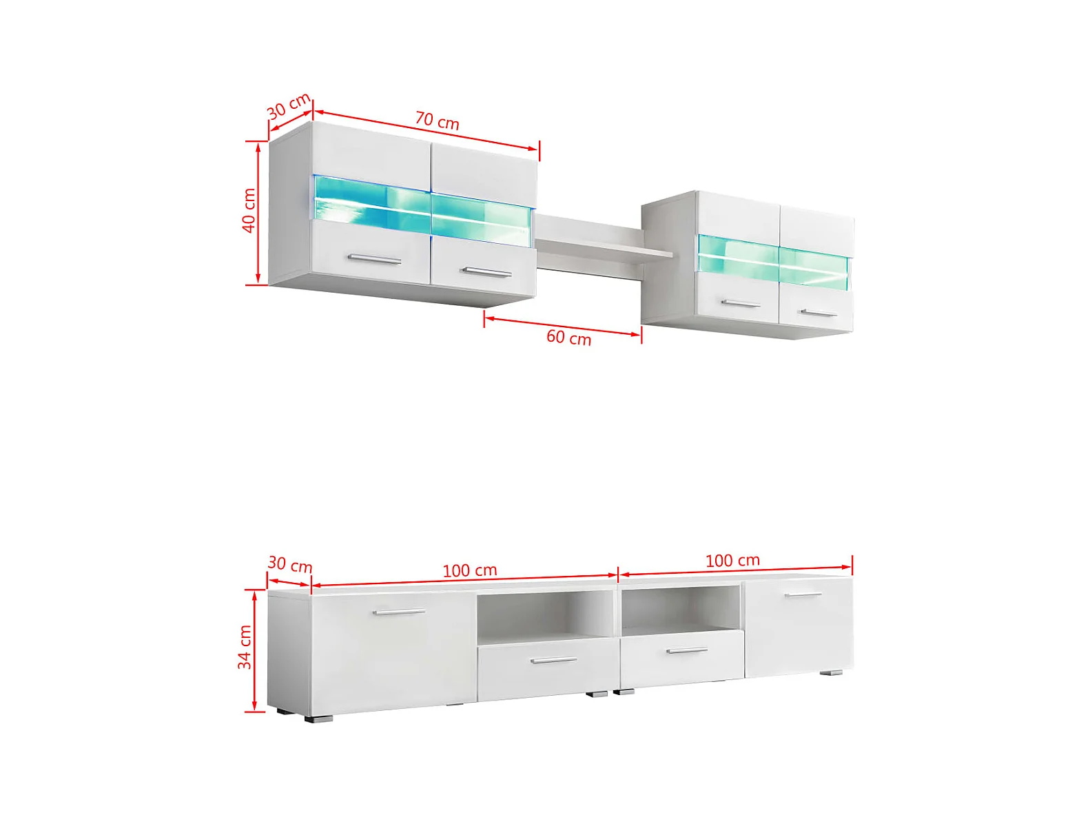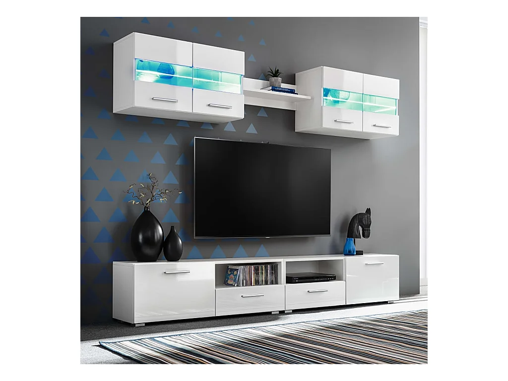 Ensemble Meuble mural TV 5 pcs lumières LED Haute Brillance