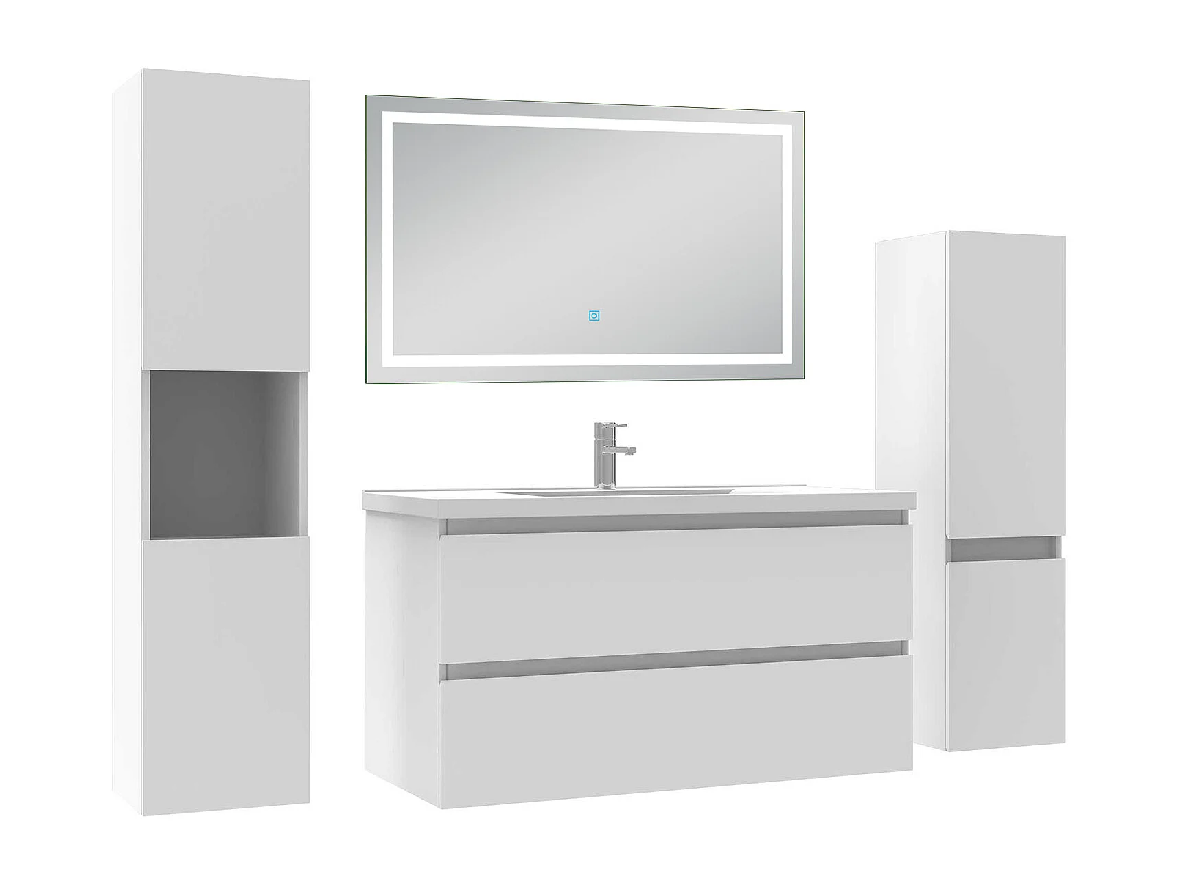 Ensemble meuble Salle de Bain 100cm avec colonne et miroir lumineux 3 couleurs blanc