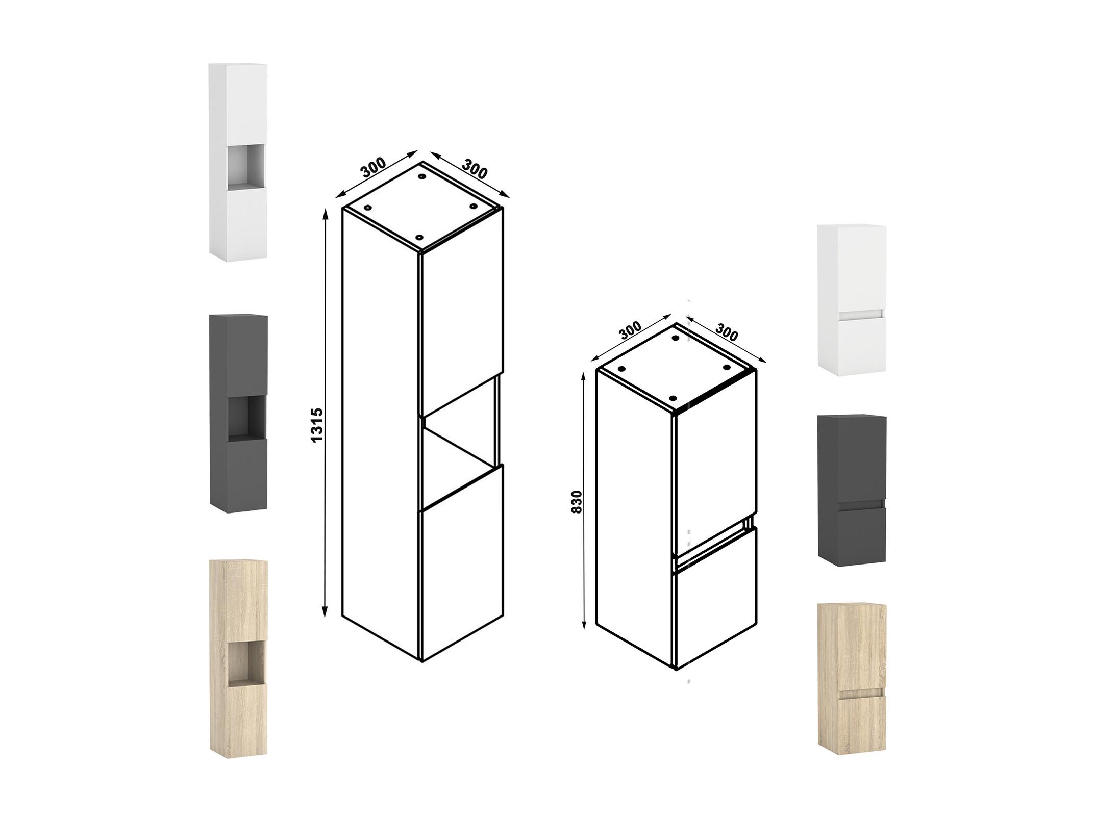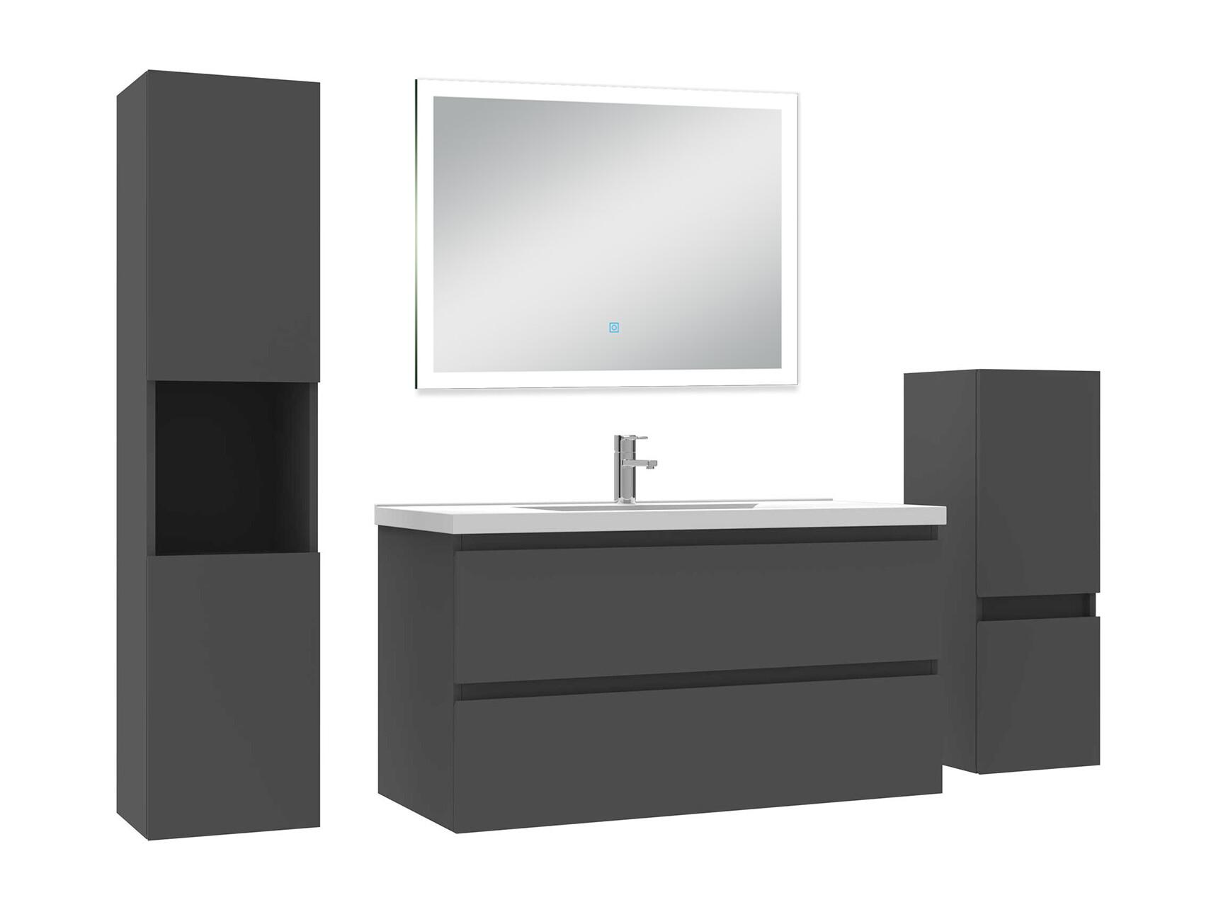 Ensemble meuble Salle de Bain 100cm avec simple vasque et colonne et miroir lumineux dimmable anthracite