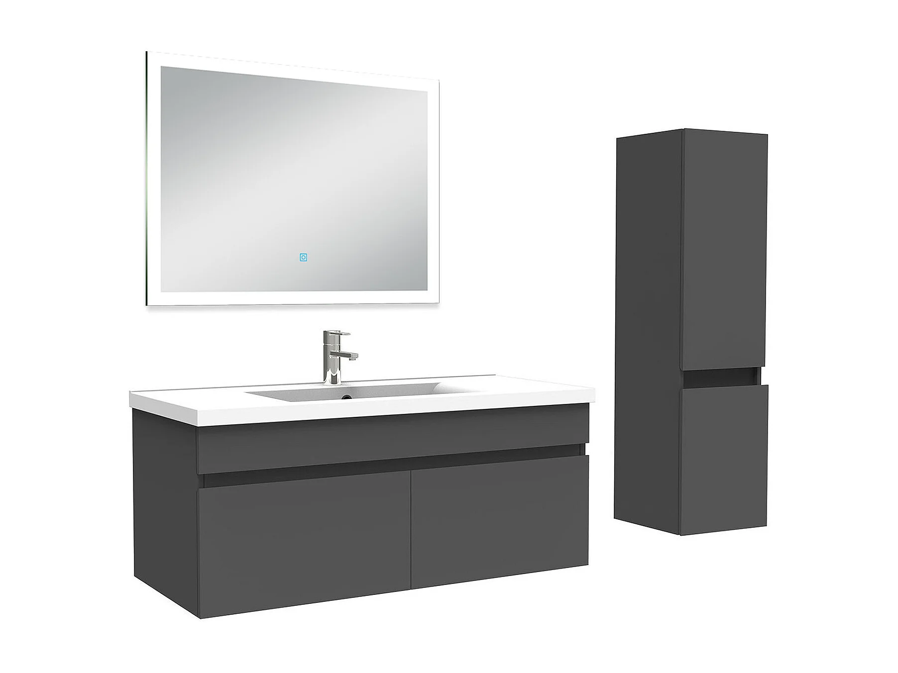 Ensemble meuble Salle de Bain 100cm avec vasque + colonne + miroir lumineux 3 couleurs anthracite
