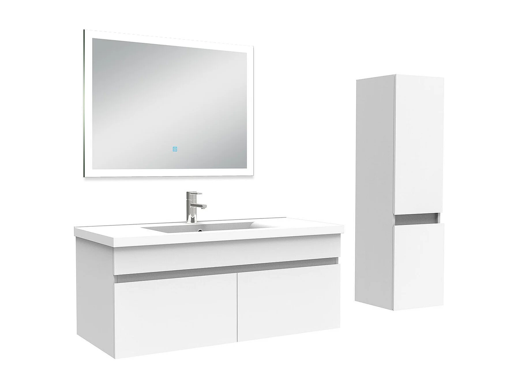 Ensemble meuble Salle de Bain 100cm avec vasque + colonne + miroir lumineux 3 couleurs blanc