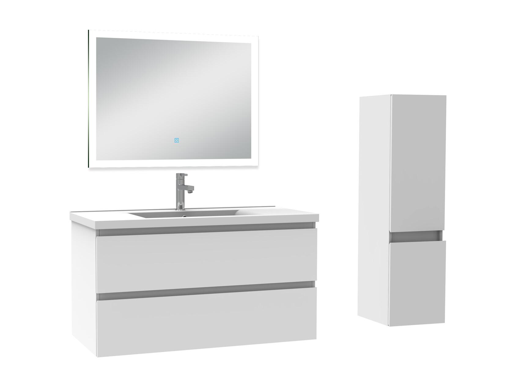 Ensemble meuble Salle de Bain 100cm avec vasque et colonne et miroir lumineux 3 couleurs blanc