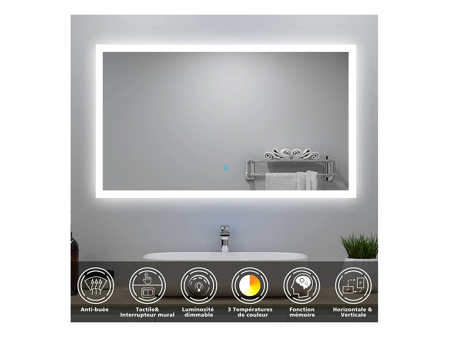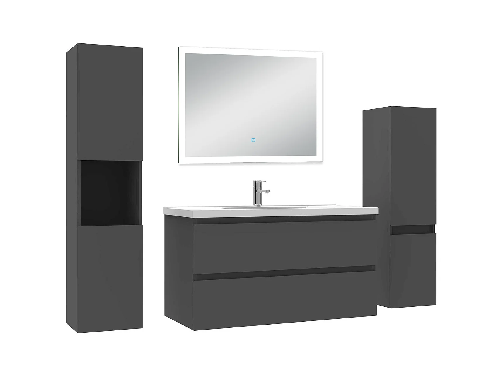 Ensemble meuble Salle de Bain 100cm simple vasque avec colonne et miroir lumineux dimmable anthracite