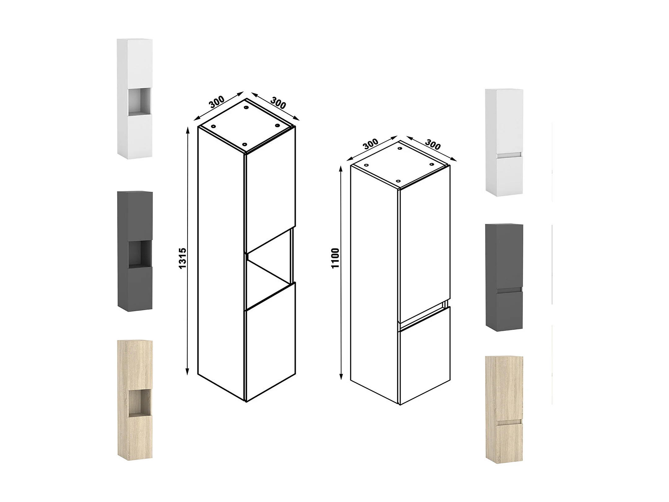 Ensemble meuble Salle de Bain 120cm avec colonne + miroir lumineux 3 couleurs Chêne Wotan