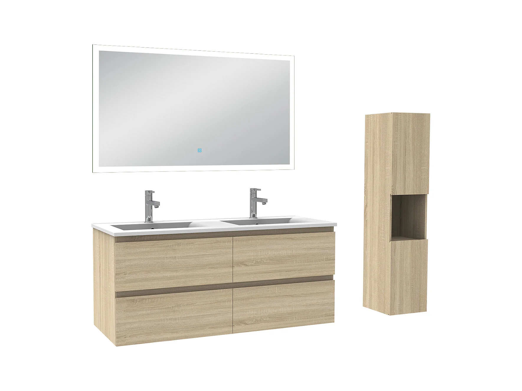 Ensemble meuble Salle de Bain 120cm avec vasque et colonne et miroir lumineux dimmable chêne wotan