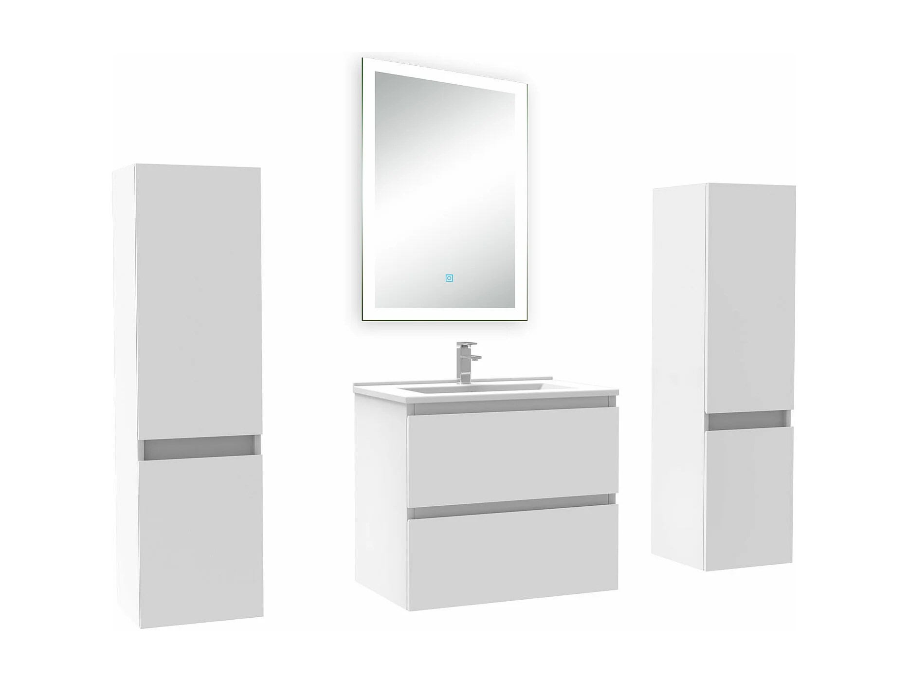 Ensemble meuble Salle de Bain 60cm avec colonne et miroir lumineux dimmable blanc