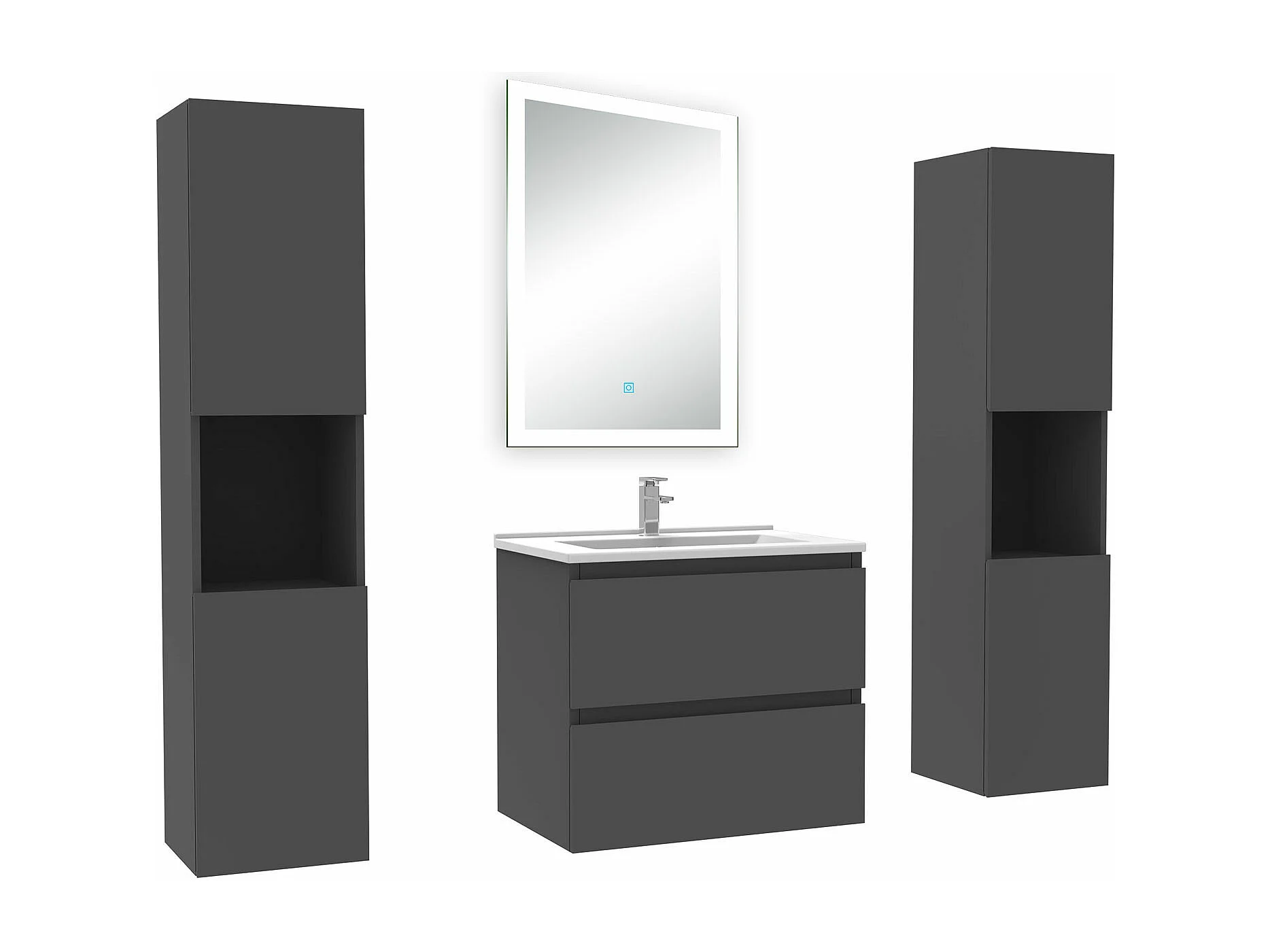 Ensemble meuble Salle de Bain 60cm avec colonne + miroir lumineux dimmable anthracite
